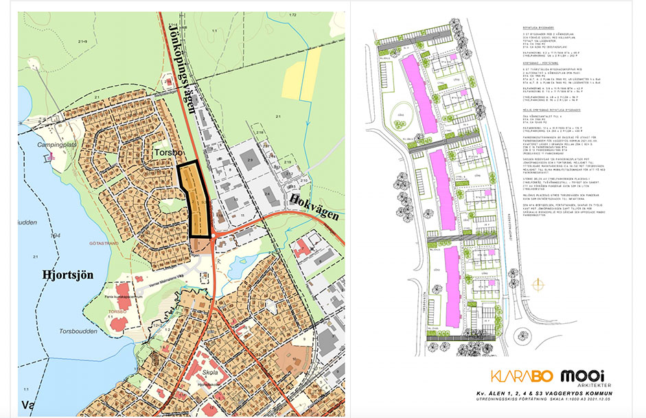Det kan byggas på höjden och området är strategiskt viktigt när Vaggeryds tätort växer så det knakar. Fastigheten heter Ålen och i dag finns tre hus som är tre våningar med hyresrätter. Ägaren är KlaraBo och syftet med begäran om planbeskedet avser är att genom upprättande av ny detaljplan för kvarteret Ålen, möjliggöra förtätning av kvarteret med nya hyresrätter. Förtätning avser såväl en eventuell påbyggnad av befintliga bostadshus samt att bebygga nya flerbostadshus med tillhörande bil- och cykelparkeringsplatser. Området är 2,6 hektar. De nya husen, som planeras inom samfälligheten Torsbo är tänkta att bebyggas i två till fyra våningar och avser förslagsvis hyresrätter i olika storlekar. Med nya hus på fyra våningar beräknas cirka 100 nya lägenheter tillkomma. Utredningsskissen har också räknat in elva bilparkeringsplatser per tusen kvadratmeter i bruttoarea och två cykelparkeringsplatser per lägenhet.  Befintlig bostadsbebyggelse, tre hus, önskas få möjligheten för påbyggnad med ytterligare en våning.