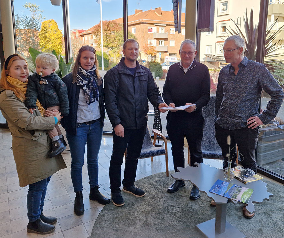 Oscar Nordquist nämner efter överlämningen att ”vi är glada att vi har politikerna med oss. Fina tomter finns så förskolan behövs. I dag går det 26 barn på förskolans två avdelningar".
