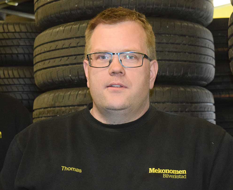 På Mekonomen i Vaggeryd finns däckhotell och verkstad. Vi träffar Fredrik Nordqvist i butiken som har satsat hårt och är nu inne på sjunde året som bilverkstadsägare.