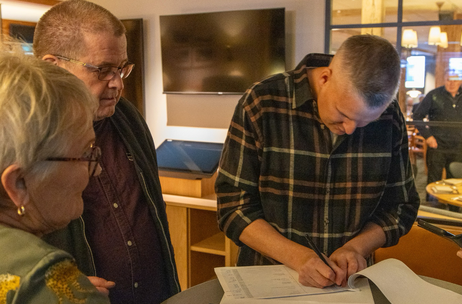 Det var kö ut mot trappan vid ingången till Golfklubben när medlemmarna ankom.