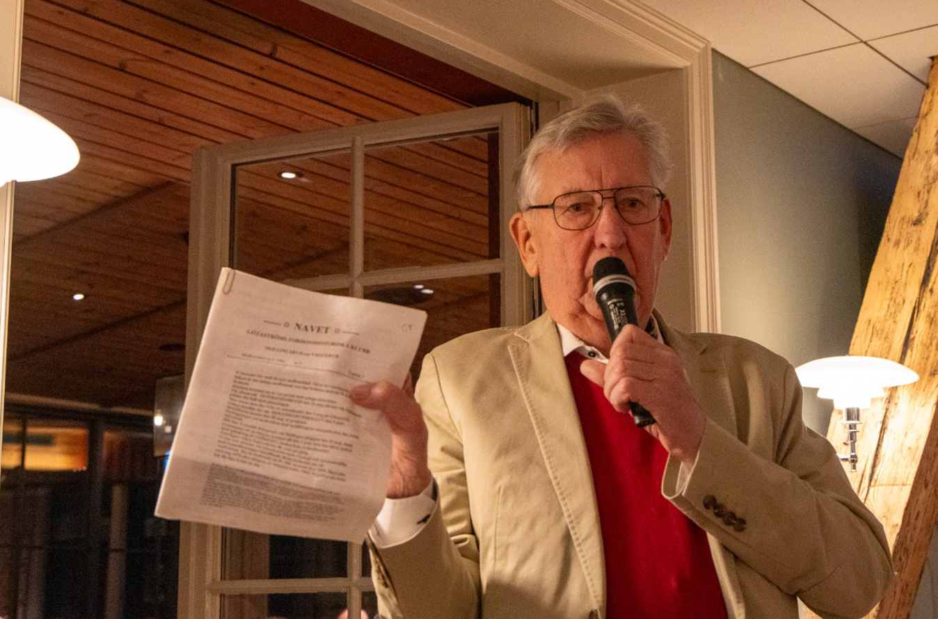 Kjell Boberg som varit medlem under lång tid och även ordförande i klubben höll tal och visade bland annat upp ett av de första numren av klubbtidningen Navet.