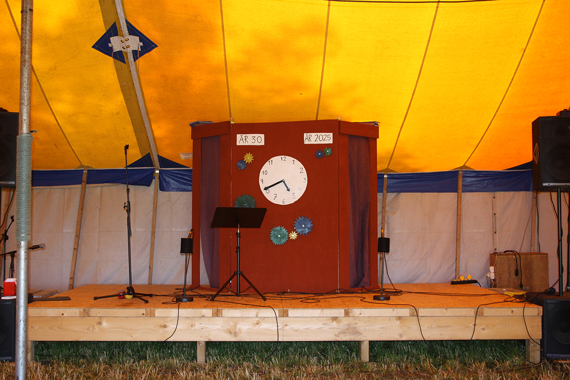 Ett helt litet samhälle har byggts upp på ett fält mellan skog och sjö mitt ute på landsbygden. Här har över 200 ungdomar och omkring 80 ledare samlats för att leva mobilfritt lägerliv och ha kul tillsammans.