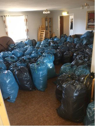 Hjälpsändningen till Ukraina med 200 säckar med kläder, sängkläder och liggunderlag och ett antal kartonger med hygienartiklar levererades idag från Pingstkyrkan Skillingaryd till Ukraina.