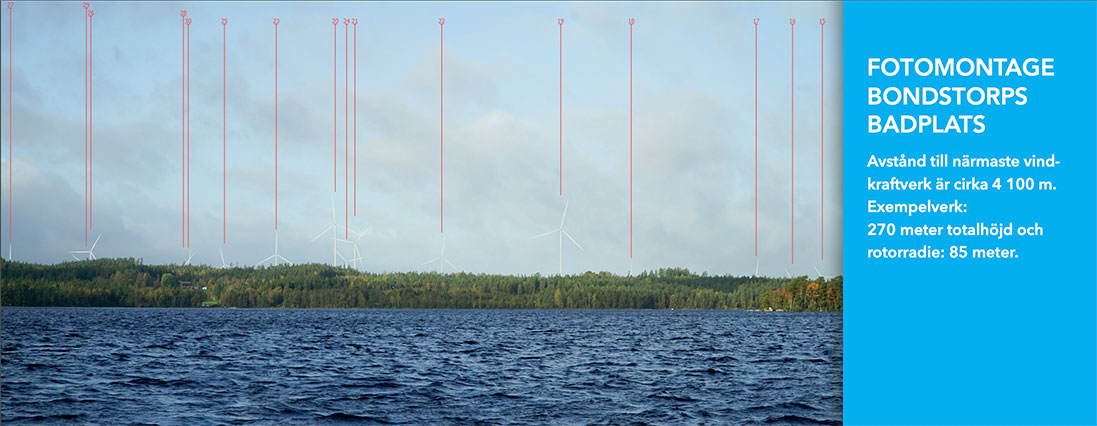 7. Samtliga 16 vindkraftverk i södra vindparken Lunnarsbo kommer att synas från Bondstorp samhälle, där de flesta bor i en sluttning mot väster. Förstörd utsikt är en sak, men mycket värre är det buller som kommer att höras och öka över Rasjöns öppna vatten. Dessutom kommer det högintensiva vita ljuset från 16 verk som blinkar en gång per sekund att synas så fort det mörknar. Om sjön ligger stilla, vilket inte är ovanligt på kvällen, så kommer blinkljuset att skapa reflexer i sjön. Att Bondstorps mer än 200 invånare inte kallats till samråd är en skandal. Nu får vi hoppas att våra politiker i Vaggeryds kommun bryr sig om att trygga livsmiljön för sina invånare och anstränger sig för att skydda det värdefulla rekreationsområde som Rasjön med omnejd utgör.