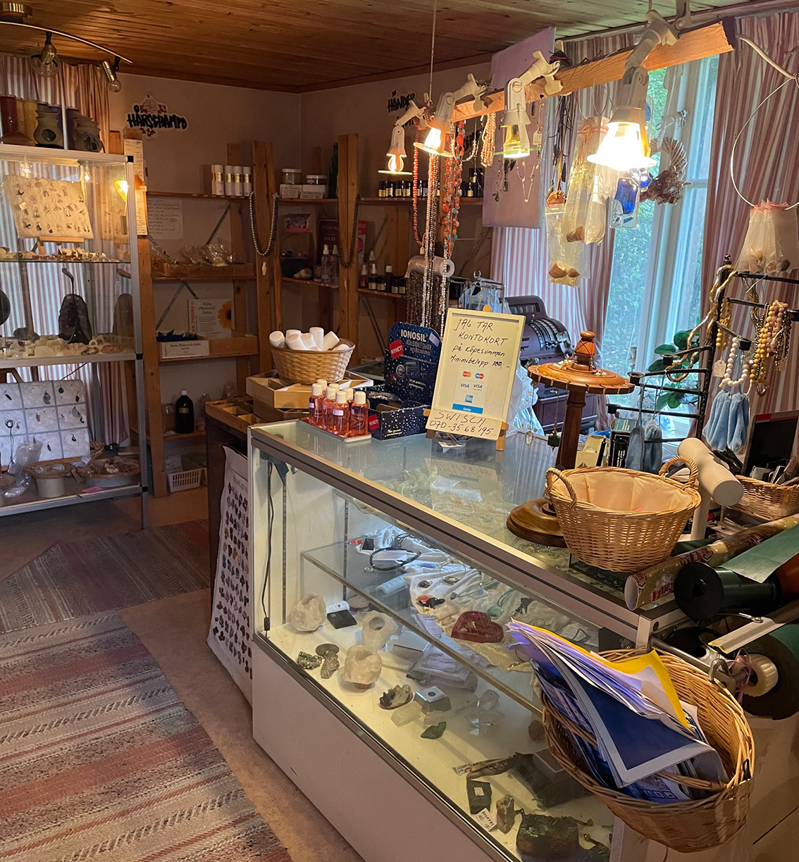 När jag besöker Ritva i Snuddebo fyller hon år dagen till ära och bjuder på prinsesstårta och kryddigt ört-te av rosor. Med tanke på alla grejer som finns i det lilla köket jämte butiken förstår jag att Ritva har många intressen. Men hur började det egentligen?