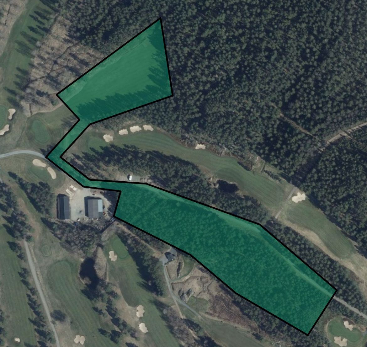 I anslutning till planområdet finns två 18-hålsbanor. Det norra bostadskvarteret är belägen mellan parkbanan och skogsbanan medan det södra bostadsområdet ligger intill skogsbanan. Det norra området bedöms, utifrån slagriktning och säkerhetsvinklar inte påverkas av golfverksamheten. Det södra delområdet bedöms främst beröras av hål nummer tio tillhörande skogsbanan.