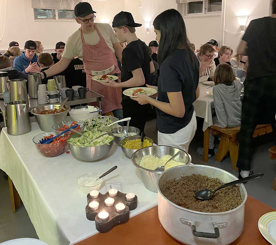 – 47 fantastiska ungdomar har varit med och fyllt dagarna med fartfylld skidåkning i Vemdalsskalet och Björnrike. En höjdpunkt under veckan är när det serveras kebab i backen. Efter dusch, bastu och hemlagad mat har kvällarna fyllts till bredden med aktiviteter, andakter och go gemenskap, berättar Karin Sparrenholt.