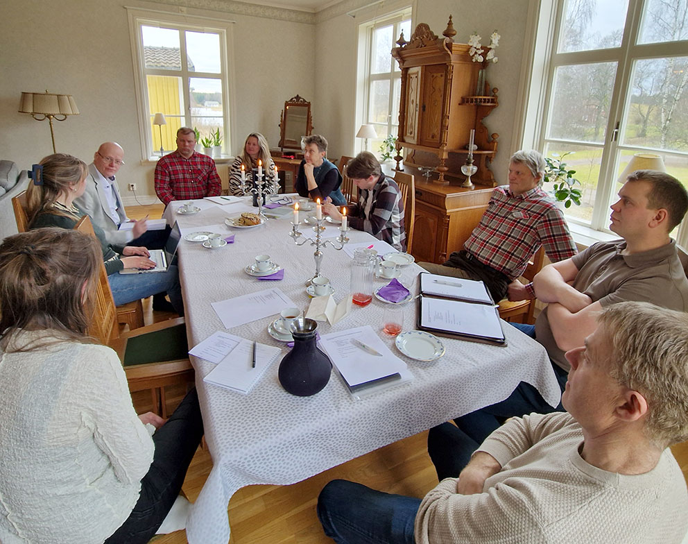 Vi tog oss till Gärahovs gård under tisdagseftermiddagen där det första planeringsmötet genomfördes. Runt fikabordet fanns Axel och Martina Willman, lantbrukare på gården och värd för årets sommarmöte, Johan Thorsell, näringslivschef, Jennie Svensson, besöksnäring och turism Vaggeryds kommun, Per Carlsson, Östbo häradsgille och Vaggeryds Farmartjänst, Olof Sjöholm, ordförande i Östbo häradsgille, Stefan Storck från LRF och just i dag representant från Vsok som ska ta hand om parkering samt Birgitta Andersson, Mårten Borell och Lovisa Filipsson från Hushållningssällskapet.