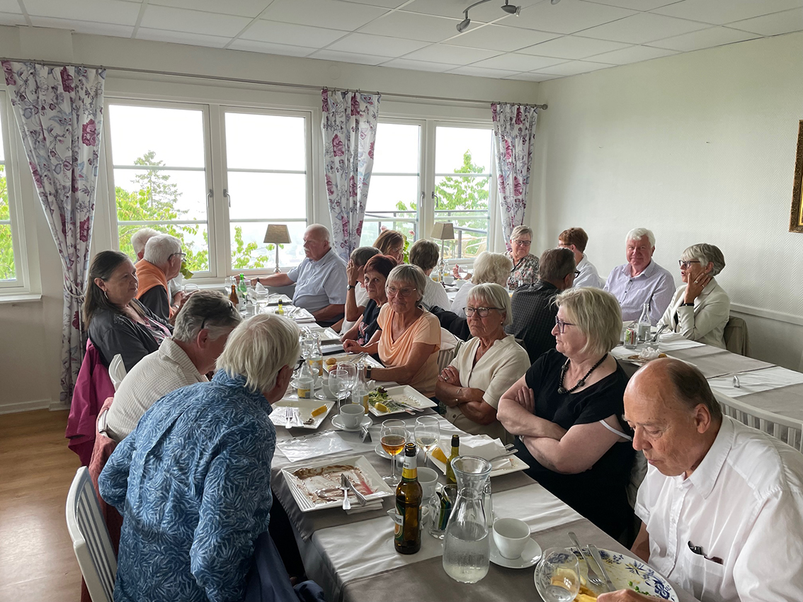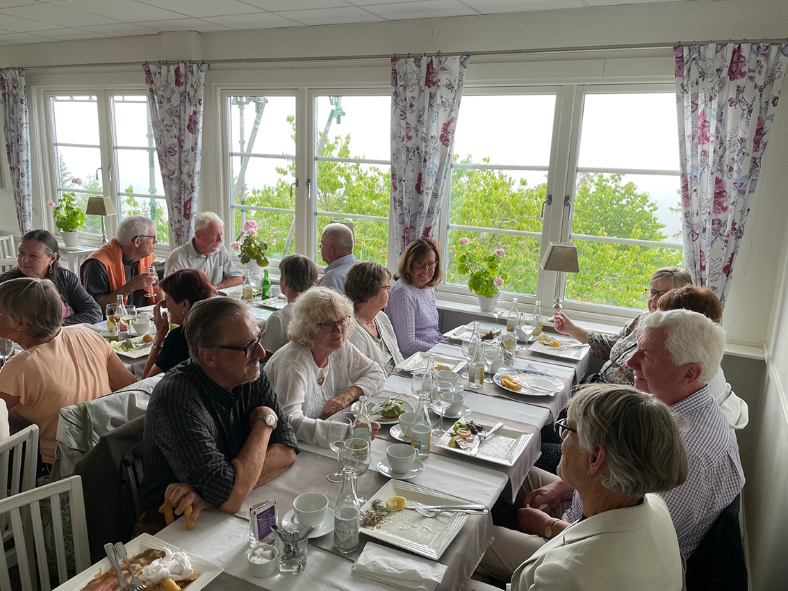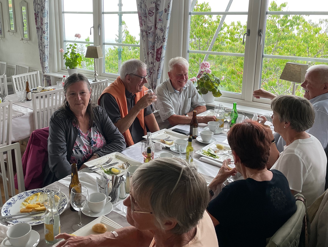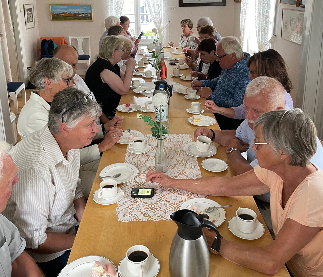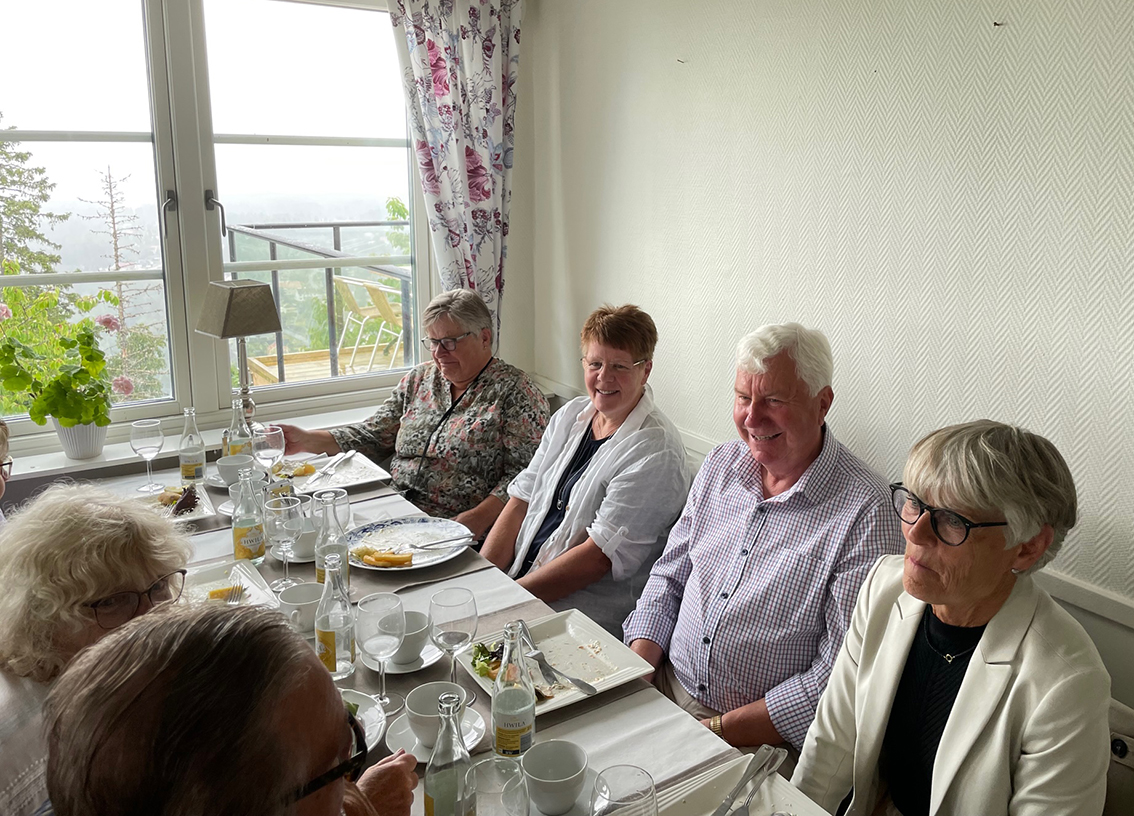 Efter en god lunch på Tabergstoppen gick färden åter hemåt via Månsarp, Ekeryd och Bratteborgs Gård. I Magnisa Stuga serverades kaffe och tårta blandat med många glada minnen och hjärtliga skratt.