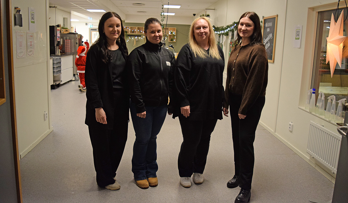 Innanför matsalen fixar klassföräldrarna Elin, Malin, Kristin och Ann-Sofie med fikat. – Fint av lärarna att de ordnat med allt. Vi kom lite tidigare i kväll för att förbereda, duka för fikat som vi ska inta när framträdandet är klart.