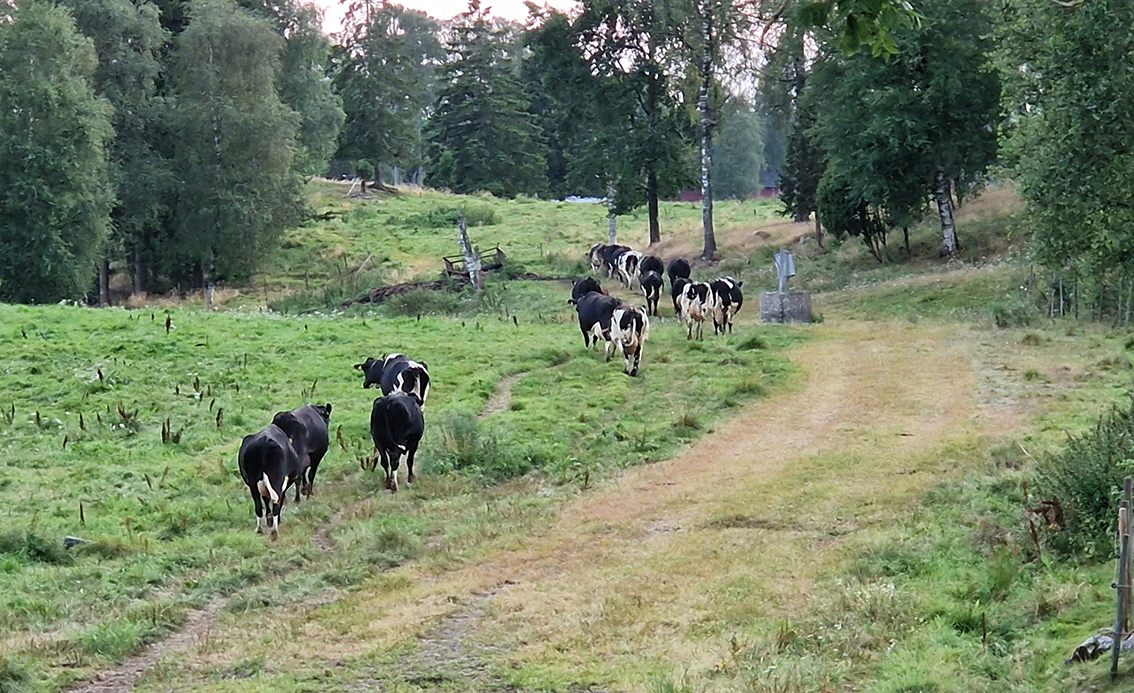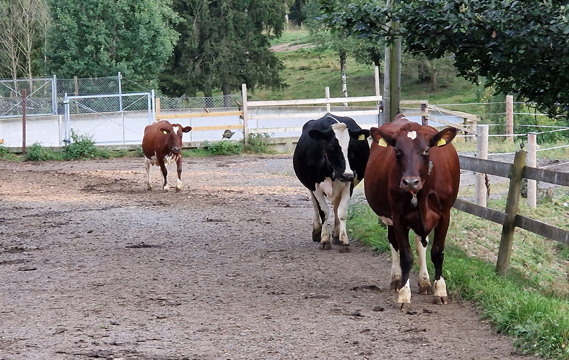 – Det har gått riktigt bra att lära om våra kossor. Vi har 136 kossor och vi tycker det är ett bra flöde bland robotarna. Ombyggnationen började vi med i december 2023 och stallet stod klart förra sommaren. Nu har vi ett normalt arbetsliv, berättar Julia Karlsson.