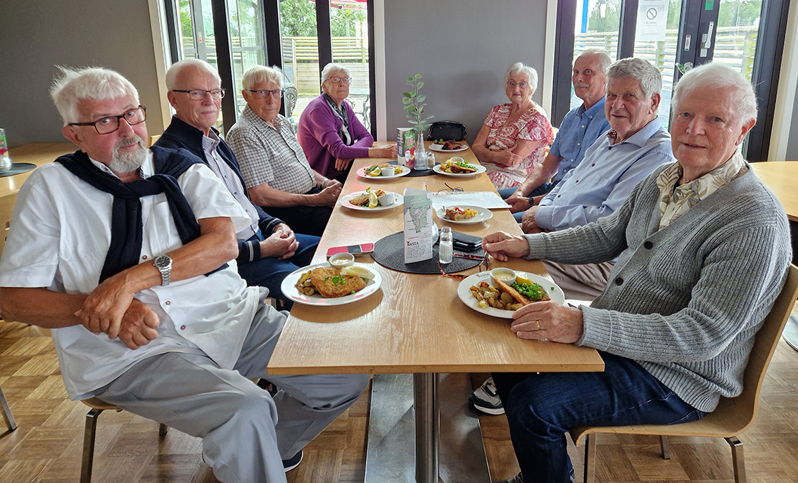 De åtta eleverna beställde mat, fika och fortsatte prata minnen i Klevshult under tisdagseftermiddagen. Tänk, 70 år efter att man slutat skolan träffas klasskamraterna fortfarande. Unikt.