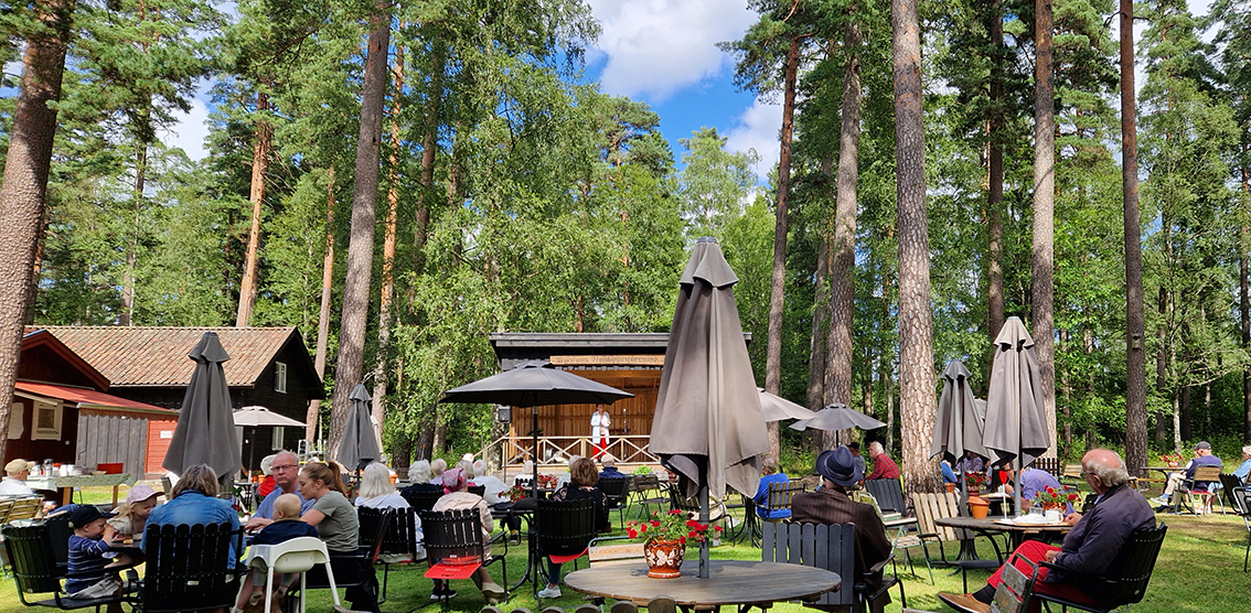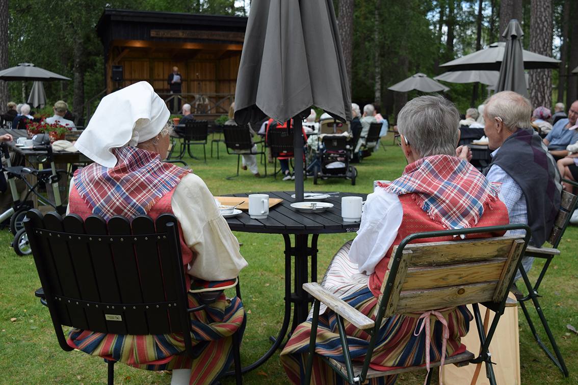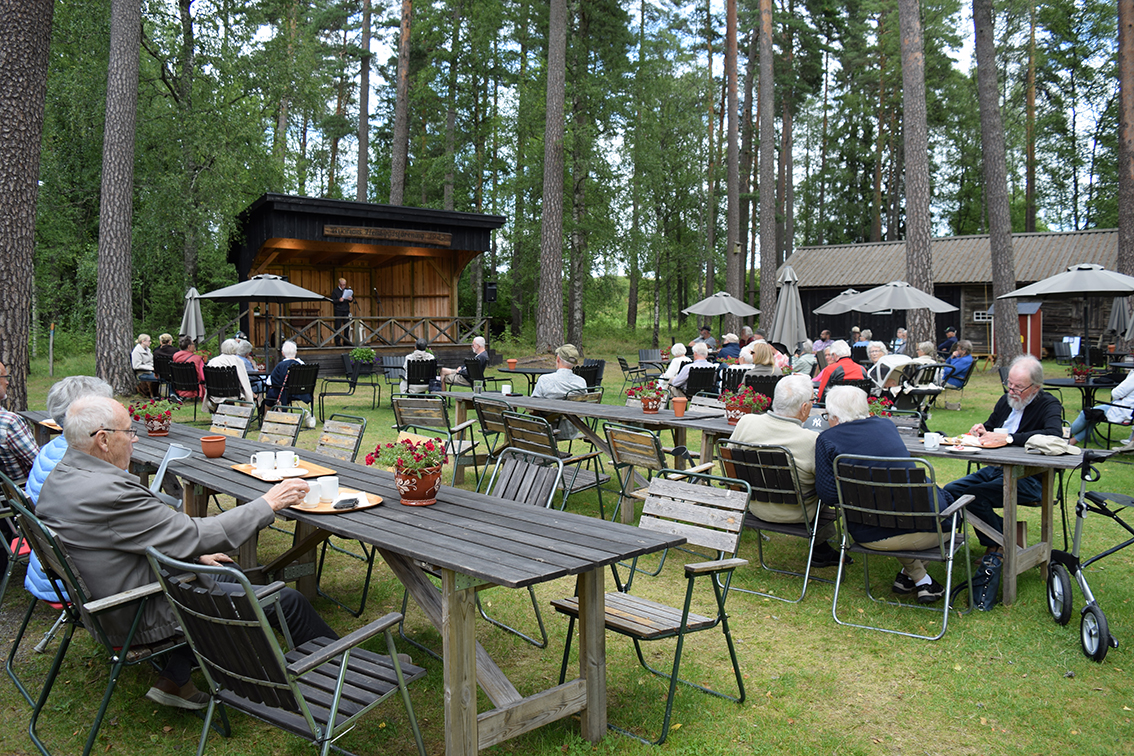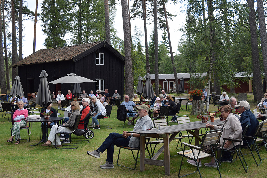 Håkan Johansson, som kommer att gästtala om de 90 åren lite senare, kommer till bordet där vi sitter och för honom är hembygdsgården rätt och slätt; samlingsplats. Från veckan innan midsommar till mitten av augusti håller föreningen hembygdsgården öppen traditionsenligt.