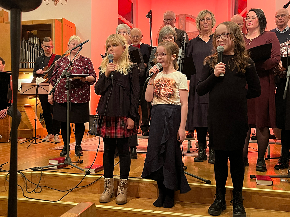 Kören bjöd på många härliga sånger med temat advent och jul. Solister var Karin Jakobsson, Stefan Aronsson och Lovisa Furbacken. En barnkörstrio med tjejer sjöng några fina sånger. Kören leddes av Jenny Larsen. Textläsning av Birgitta Johansson, Elisabeth Eriksson och pastor Signe Malmsten.