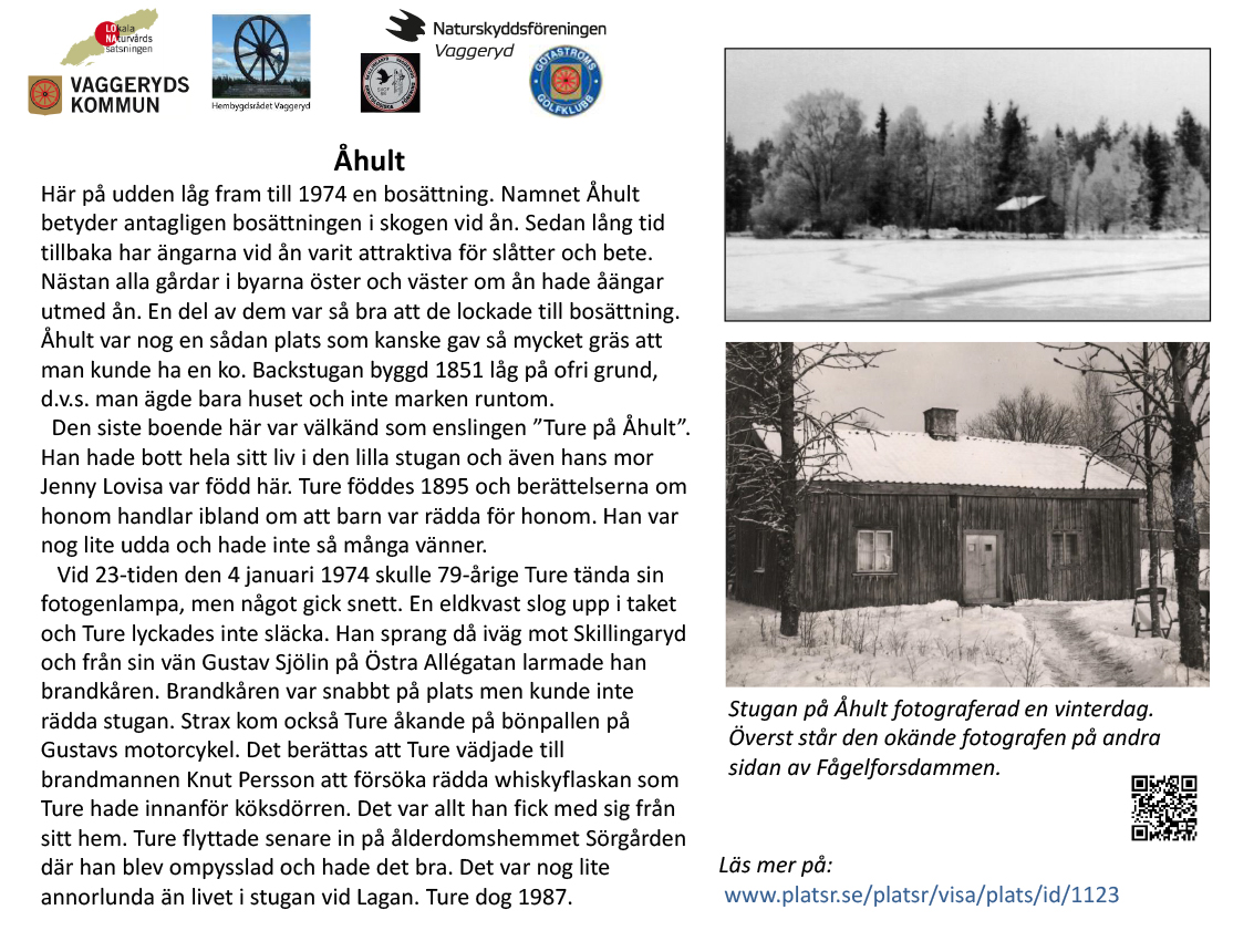 Den siste boende här var välkänd som enslingen ”Ture på Åhult”. Han hade bott hela sitt liv i den lilla stugan och även hans mor Jenny Lovisa var född här. Ture föddes 1895 och berättelserna om honom handlar ibland om att barn var rädda för honom. Han var nog lite udda och hade inte så många vänner.