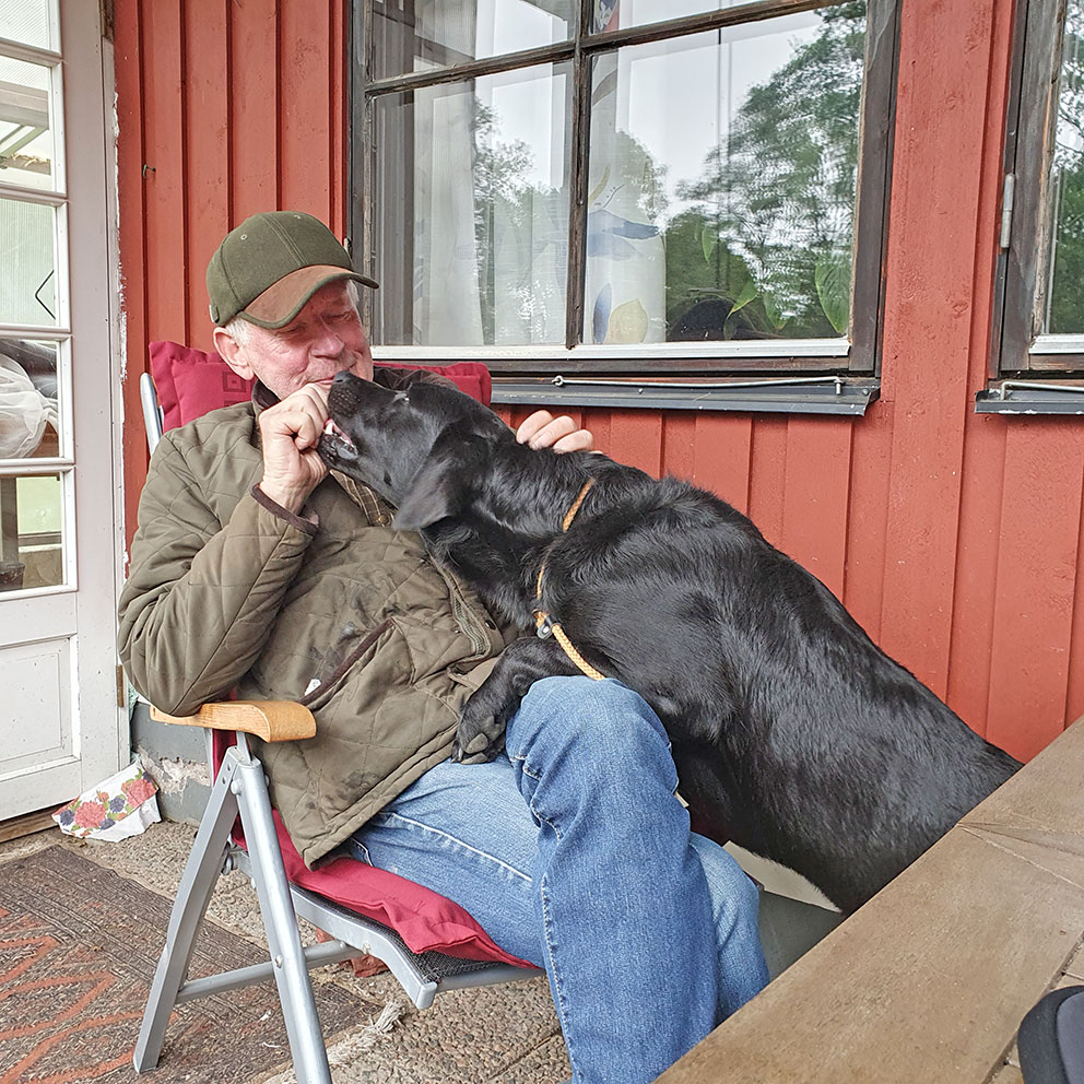 – Ja, labradorer kan äta hur mycket som helst, eller hur, säger Åke och ser ned på Valle.
