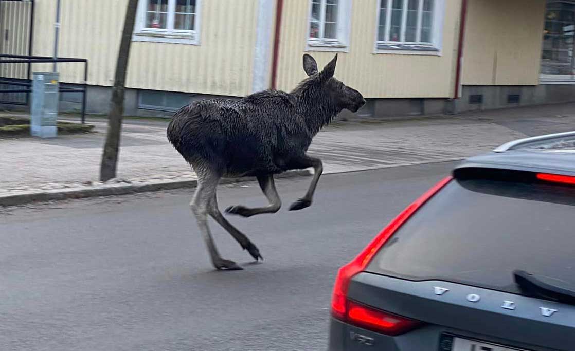 Älgar mitt i centrala Värnamo