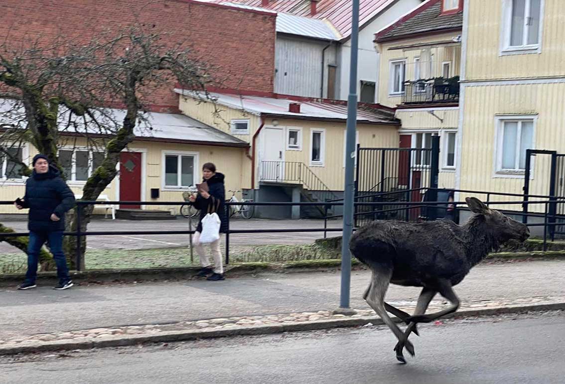 Anders Howerdal var en av många som såg en av älgarna och fotograferade denna på Lasarettsgatan alldeles invid Storgatsbacken.