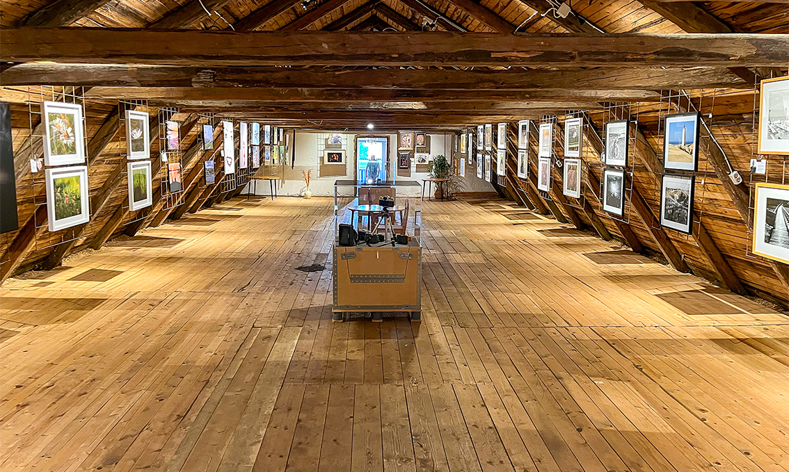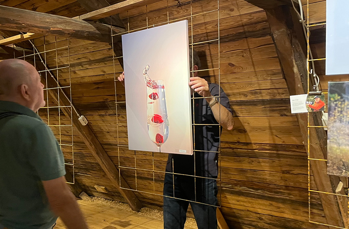 Skillingaryd.nu var på plats kvällen när fotoklubben hängde upp sina verk. Det var full aktivitet i vindslokalen, det enda galleriet i kommunen. Ljud hördes från borrmaskin, människors prat, skratt och lugna samtal i den väldiga vindslokalen. Uppåt 30 utställningar har visats här. Kanske är just fotoutställningen den trettionde, den frågan är fortfarande lite oklar. Helt klart däremot är att det bara är bra grejer som får ställas ut här.