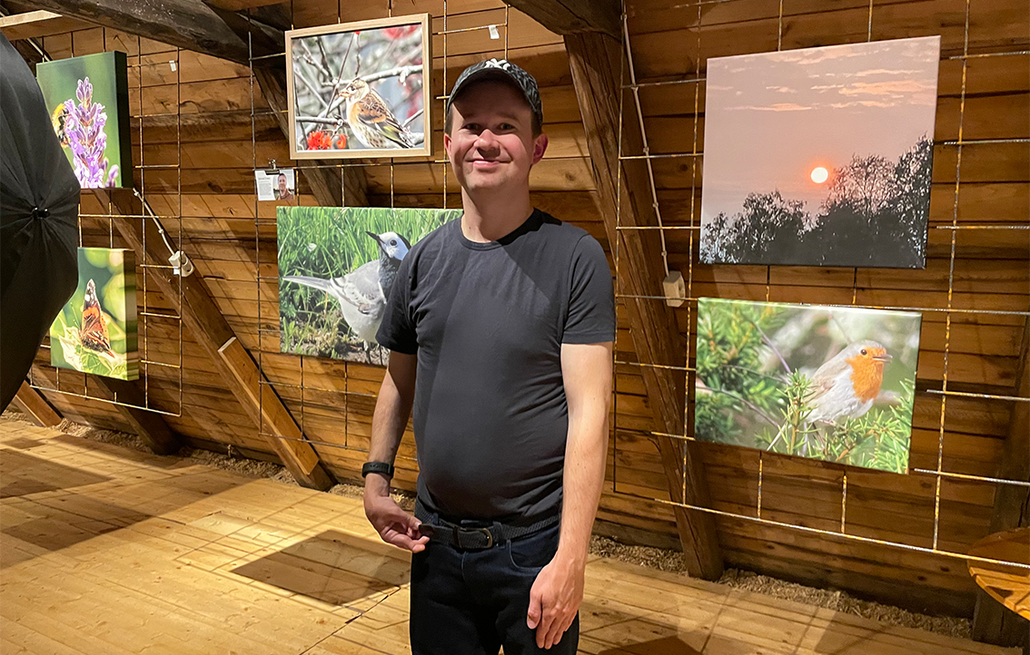 – Jag är mest intresserad av att fota småfåglar. Den här rödhaken gillar jag. Det är kul att ställa ut sina bilder, även om det är lite nervöst, men det är spännande, säger Samuel Erixon.