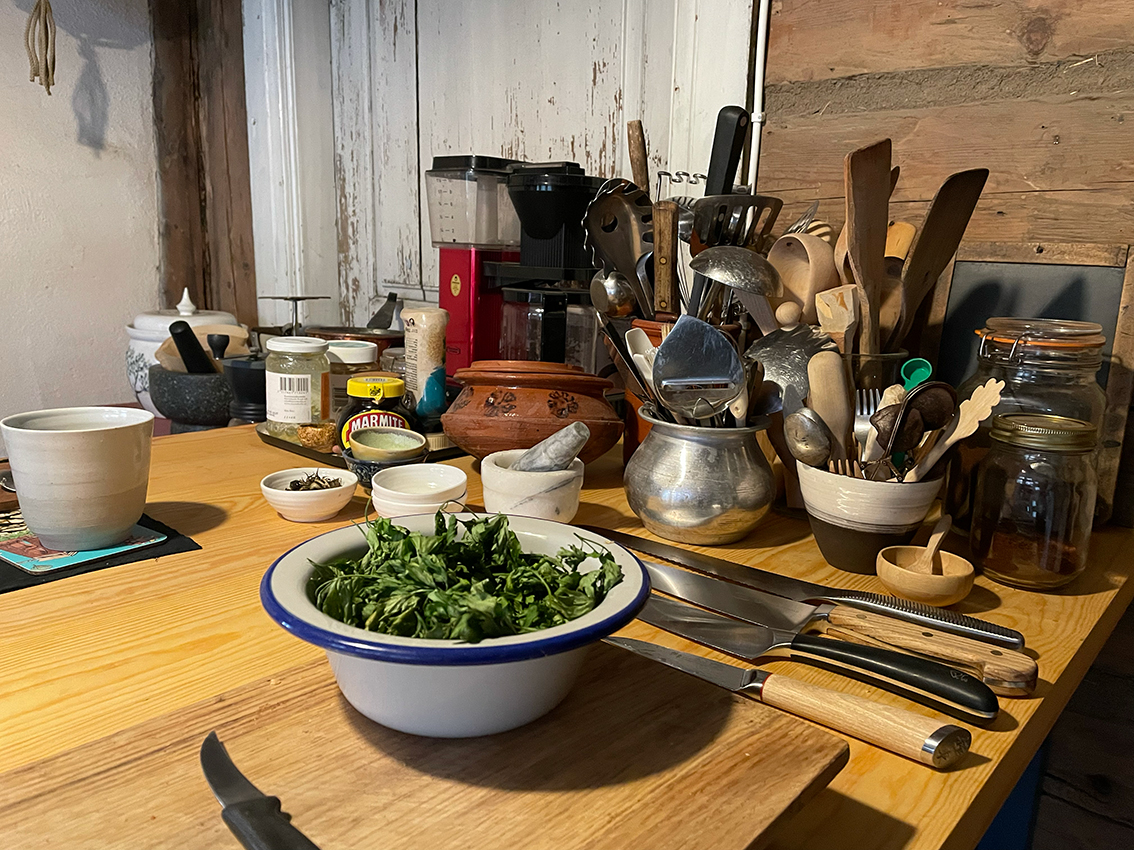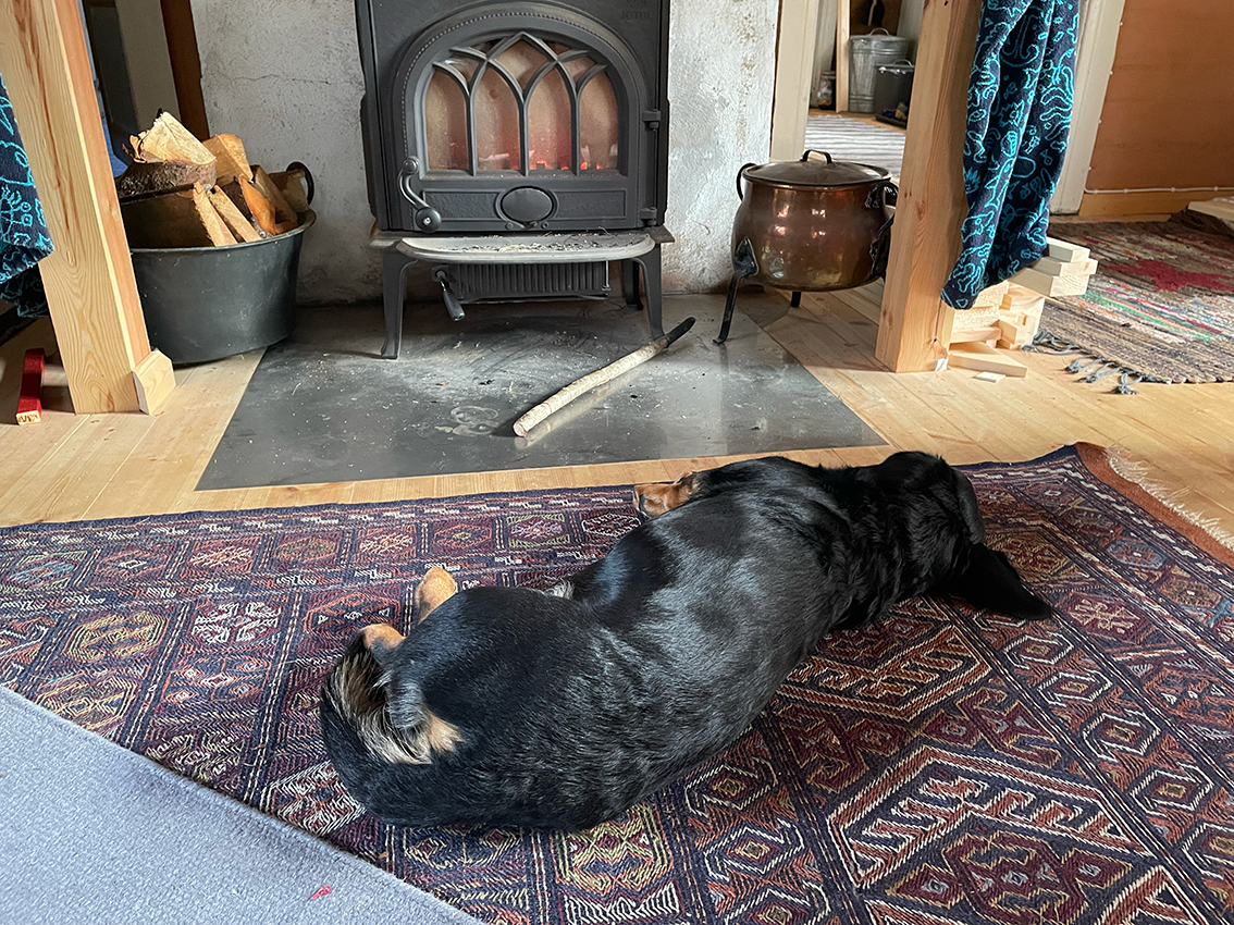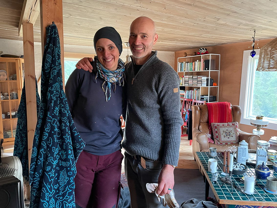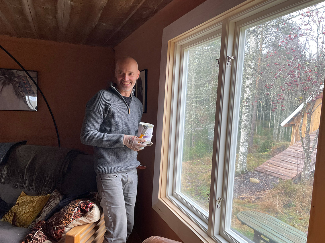 – Jo, här blir det ordentligt mörkt på vintern, vi har ingen gårdsbelysning. Mörkret gör mig ingenting, jag hade inte velat ha det hela året men jag gillar skiftningarna. Jag har nog aldrig uppskattat förändringarna så mycket som jag gör här. När man bor mitt i naturen så ser man jättetydligt de små nyanserna i säsongerna som jag aldrig märkte när jag bodde i en stad. Det är riktigt underbart. Hösten blir så mycket mer, det händer så mycket saker och på våren ännu mer. Man får anpassa sig lite efter säsongerna, mer som man gjorde förr. Och eftersom vi inte har obegränsat med el så blir vi mer medvetna om lampor och hur mycket el som vi använder. Vi har kaminer som värmekälla och vi värmer bara upp de rum där vi vistas. Vi sover gott, det är kallt men vi har många täcken. Förra vintern vaknade vi några morgnar till is på insidan av fönstren. Man vänjer sig och man märker vad man tycker är viktigt. Det blir också mycket tydligare hur vi lever, och de avtryck vi gör. Vi är måna om att vara rädda om naturen och denna plats där vi får bo. Det har varit och är en central del i hur vi har renoverat huset och hur vi vill leva. Vi är jätteglada för det här, avslutar Jenny.