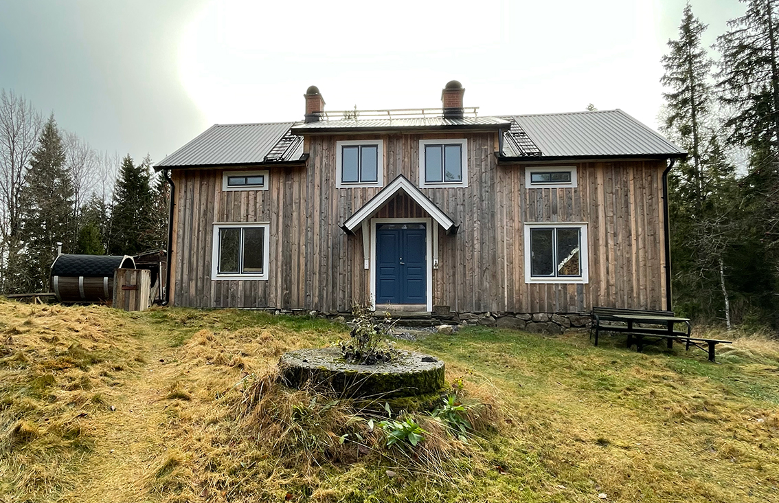 – Min pappas familj kommer i från trakterna, mina farföräldrar bodde utanför Vaggeryd och nu har min bror Marcus tagit över gården där. Min syster Ester har också flyttat hit och bor mellan Vaggeryd och Skillingaryd. Jag och min man Matthew bodde tidigare i England men under pandemin blev det väldigt tydligt att vi inte ville bo och vara fast i en stad. Vi började först kolla i England efter tomter men där är det otroligt dyrt och då började vi kika på Sverige. Min man ville gärna bo utomlands och jag ville vara närmre min familj. Min bror hittade det här stället som är ett gammalt ödehus där ingen hade bott på 80 år när vi köpte det 2020. Min bror är timmerman så utan honom hade vi inte kunnat genomföra detta, han har gjort ett otroligt arbete här. Det började med att vi åkte hit på somrarna från England och jobbade på huset, och sedan flyttade vi till Sverige förra året. Sedan dess bor vi här på heltid. Vi klarade första vintern så nu vet vi att det går, berättar Jenny.