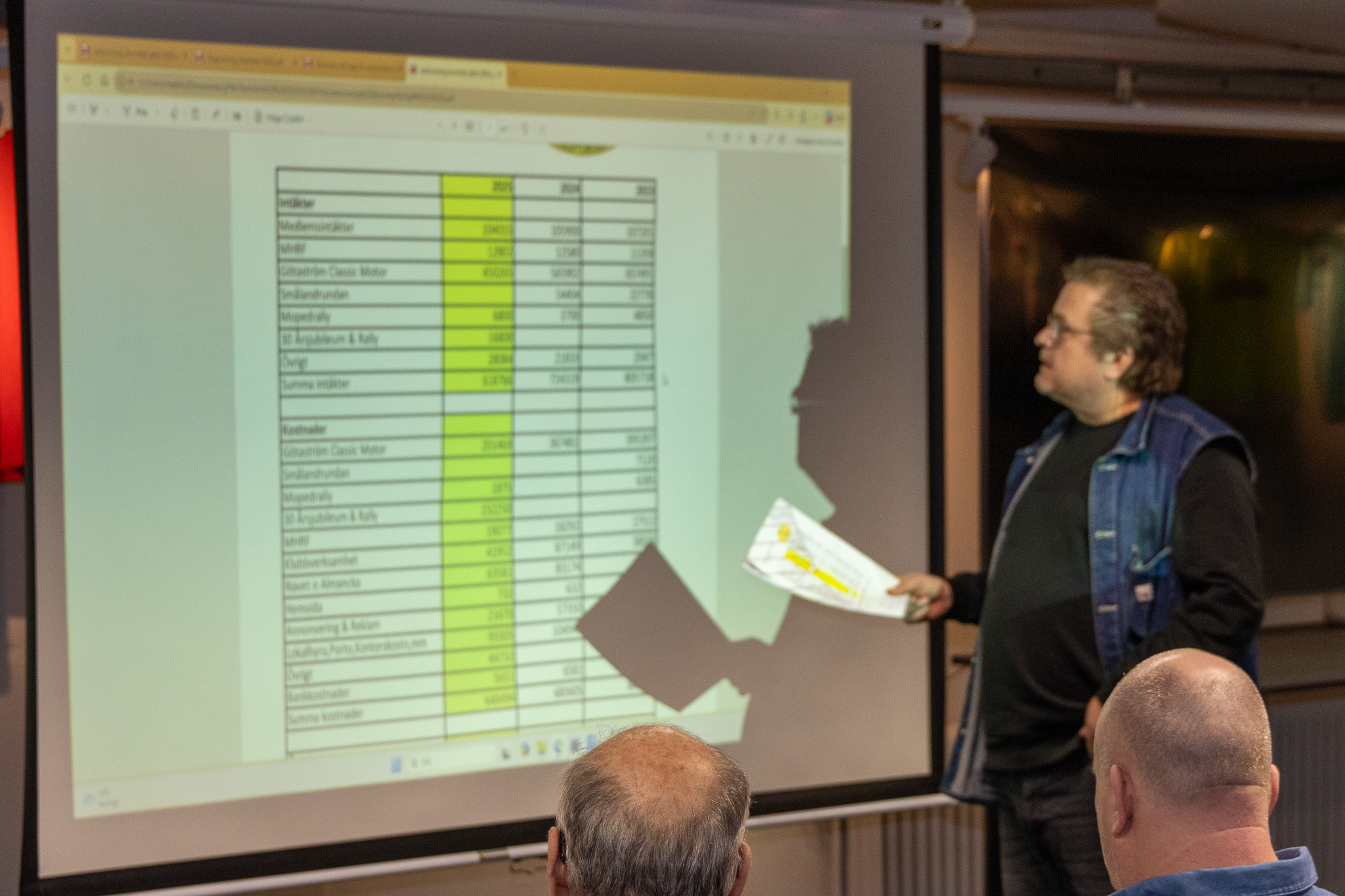 Det var ett innehållsrikt år 2025 med träffen ”Götaström Classic Motor” som huvudattraktion. Kassören Nicklas Lindberg redovisade räkenskaperna från arrangemanget.