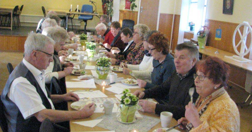 En medlem som under veckan fyllt 90 år hyllades med en blomma. Klas-Göran Andersson, som sköter mat och kaffe vid föreningens alla möten, fick också en blomma. Till årsmötet hade han gjort smörgåstårtor till allas stora förtjusning.