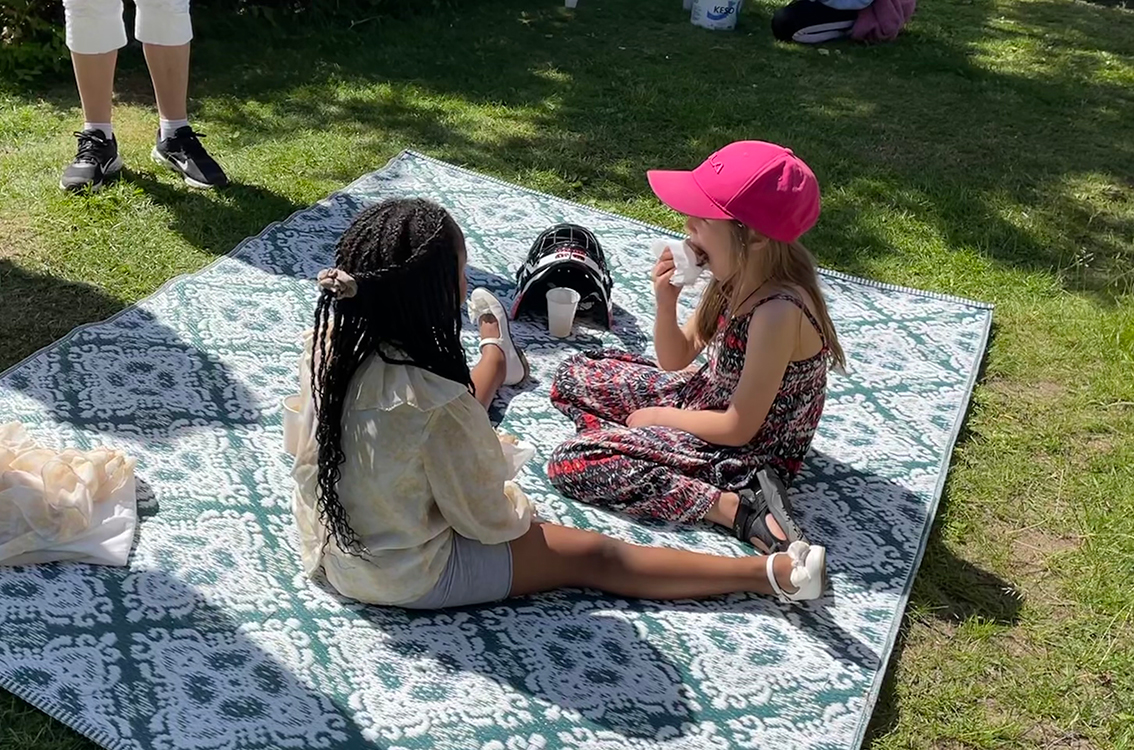 Vädret var ju helt fantastiskt på avslutningsdagen på Hjortjöskolan. Några barn spelade fotboll, andra satt på filten och mumsade hamburgare.