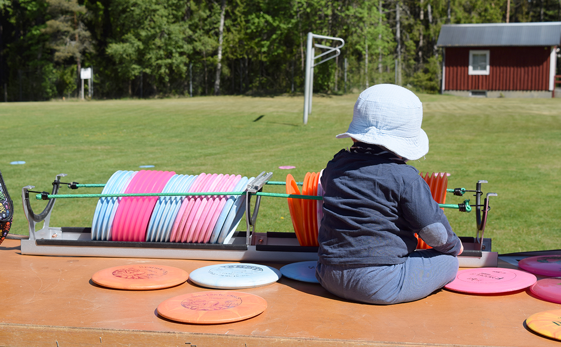 Hannes Runhammar är föreningsordförande och berätta om discgolf: – Det handlar både om teknik och taktik. Vi har byggt en bana här och man kastar discen till korgen från olika längder och höjder. Reglerna är, enkelt beskrivit, som golf. Det finns olika discar med form och djup. Vi har en bana med nio hål (reds anm; ja det heter hål och inte korg) och tanken är att vi ska bygga ut här på Bäckalyckan så vi har 13-14 stycken till sommaren. Den här sporten är tillgänglig för alla. Det krävs inte så stor ekonomisk insats eller fysisk förmåga, säger Hannes.