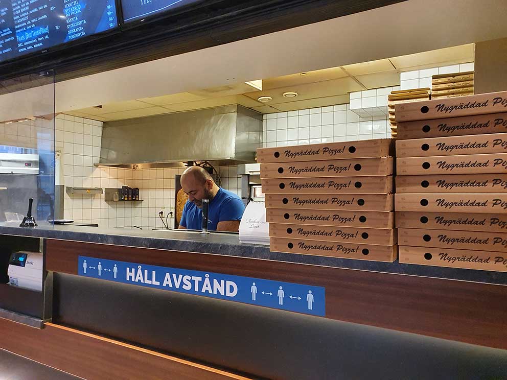 – Vi tror att vi bakar 600 pizzor idag och att hämtpizzan ökar. Vi har tagit in extrafolk så vi ska klara av alla beställningar, berättare Jhone Youssef.