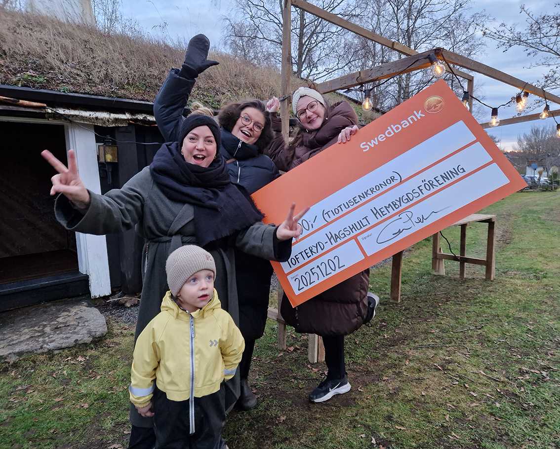 – Checken betyder jättemycket för oss. Det bidrar till mysig stämning med belysning, det hade varit väldigt mörkt här i parken innan. Bygdens företagare har ställt upp med hjälp, det känns fantastiskt och granarna är skänkta från Tofteryd, berättar Evelina Svenningson, Emmy Gustavsson och Lisabeth Vinborg.