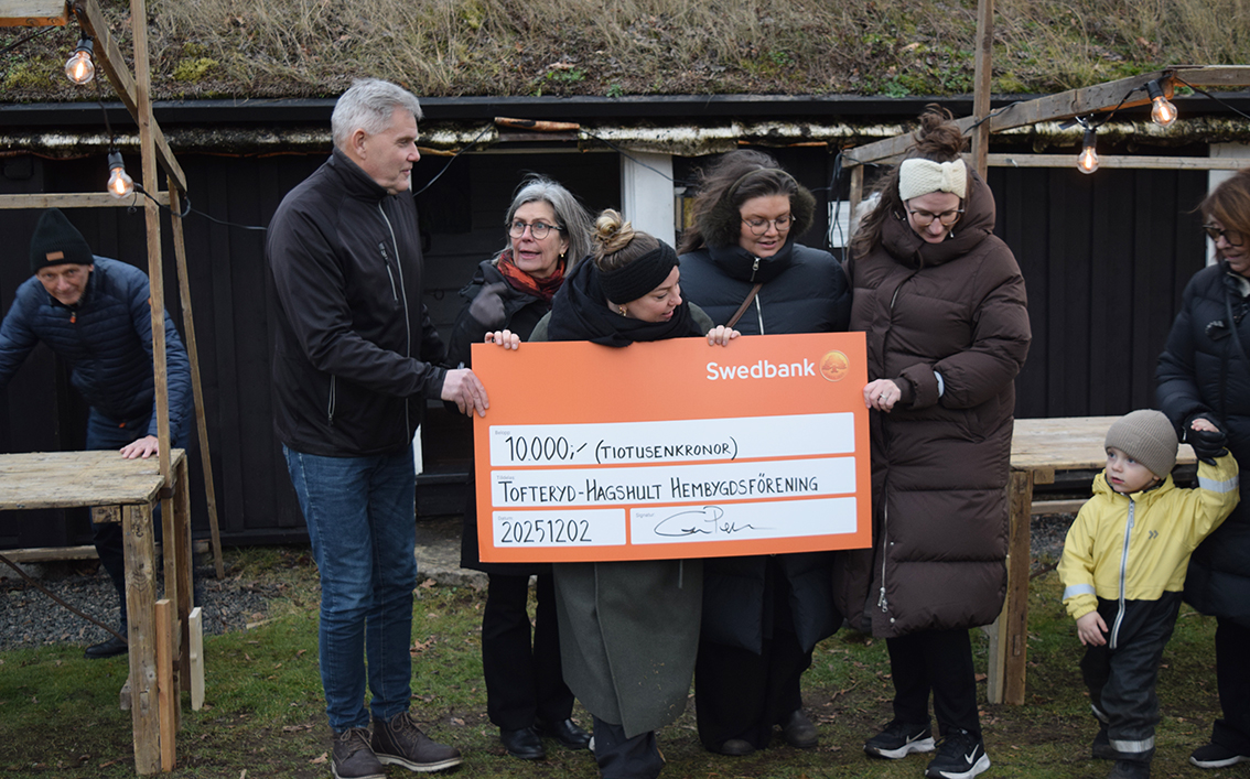 – Man ansöker via hemsidan till olika typer av projekt och det är knutet till föreningar. Vi delar ut tolv miljoner per år och det är tanken att det ska ut i bygden. När ansökningar kommit in går stiftelsen igenom dessa kontinuerligt. Ni sökte pengar för belysning. Det var trevligt tyckte vi, berättar Göran Persson och lämnar över checken till föreningen.