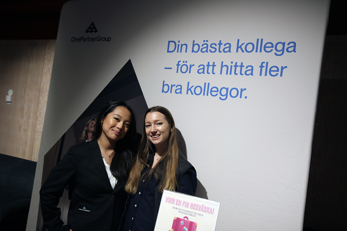 – Det är kul att vara här. Det är mitt tredje år på mässan och OnePartnerGroup har ställt ut i många år här så det är kul. Det är många som är här i dag så känslan är på topp och det är mycket blandat med folk. Det är många som är nyfikna som kommer fram som vill registrera sig på vår hemsida och vill ha kontakt med oss framåt eller vara med med i vår tävling, så jag ser det som jättepositivt. Det är alltid lika kul att ställa ut på den här mässan, speciellt i år med rekordmånga utställare och många intressanta och spännande bolag som är på plats, säger search- och kandidatansvariga Stina Runesson.