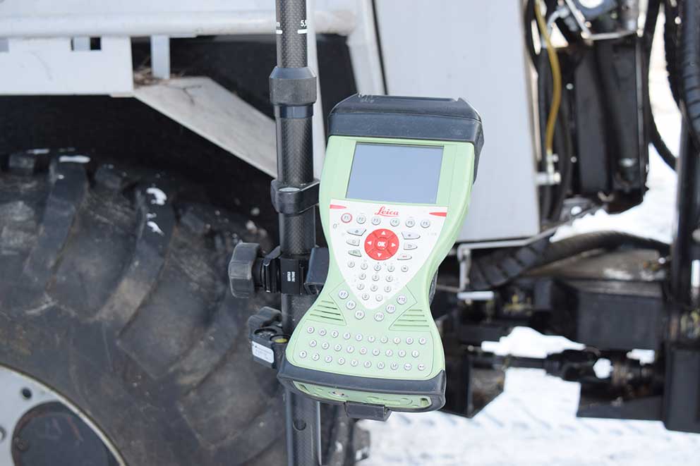 Mätinstrumentet som används för att mäta ut gränser. Koordinator tas fram. Under själva mätinstrumentet stoppar man i ett USB-minne och lagrad data används i kartprogrammet