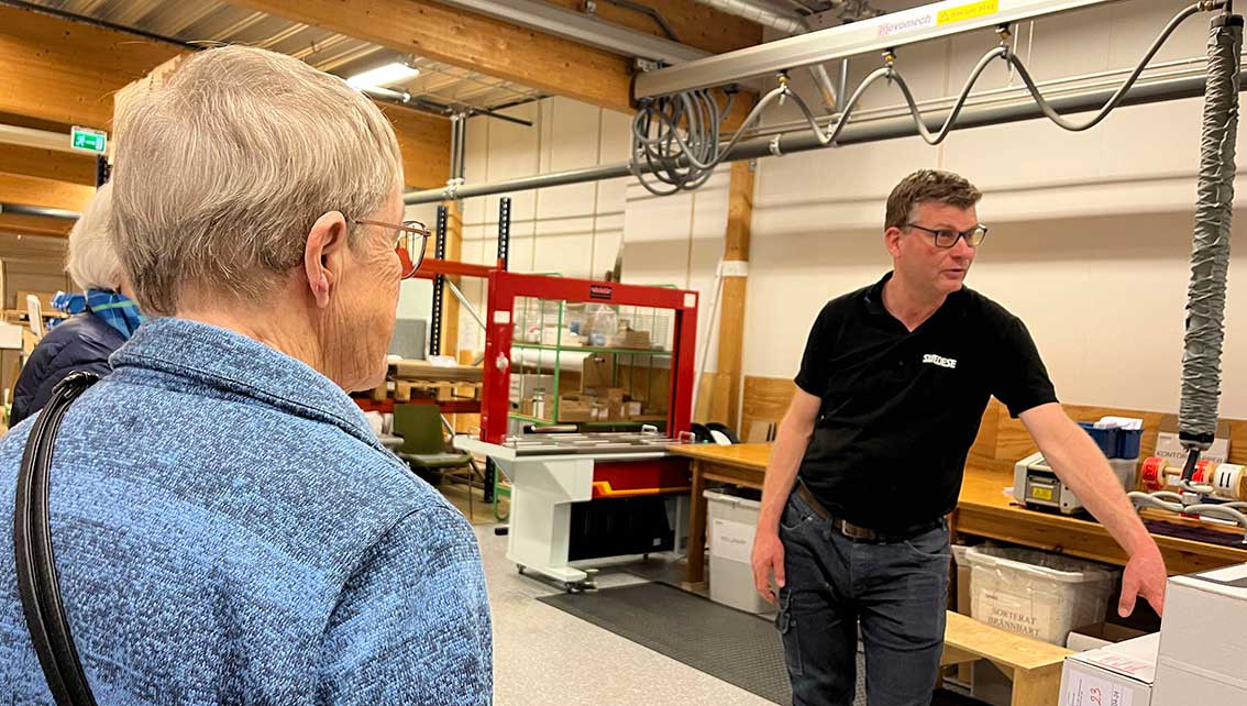 Ett 20-tal medlemmar från SPF Seniorerna gästade företaget där de fick en fin inblick i produktionen av den riksbekanta Laminostolen och mycket annat. Det var en imponerade fabrik, tyckte gästerna som fick en fin guidning av verkstadschefen Tomas Wedenby.