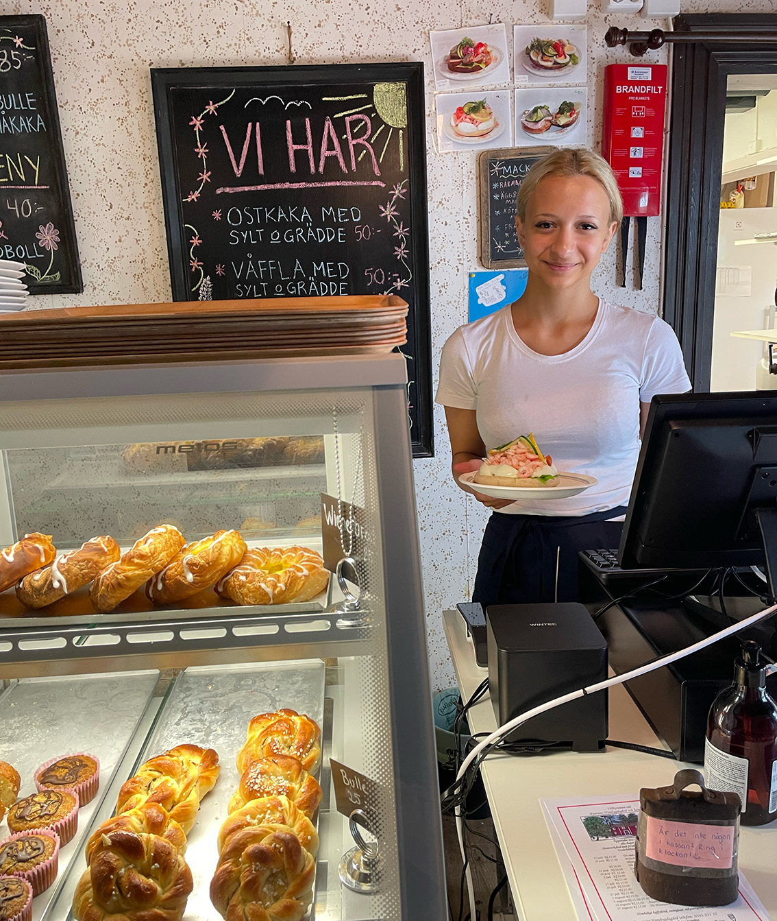 Sommarsäsongen är igång på Byarums hembygdsgård. Caféet säljer matiga mackor av olika slag, och som alltid, hembakt fikabröd. Ett populärt utflyktsmål, hembygdsgårdens cafégäster kommer från olika håll, både Tyskland, Storbritannien och Frankrike, berättar Marija Pesic som jobbar i caféet idag.