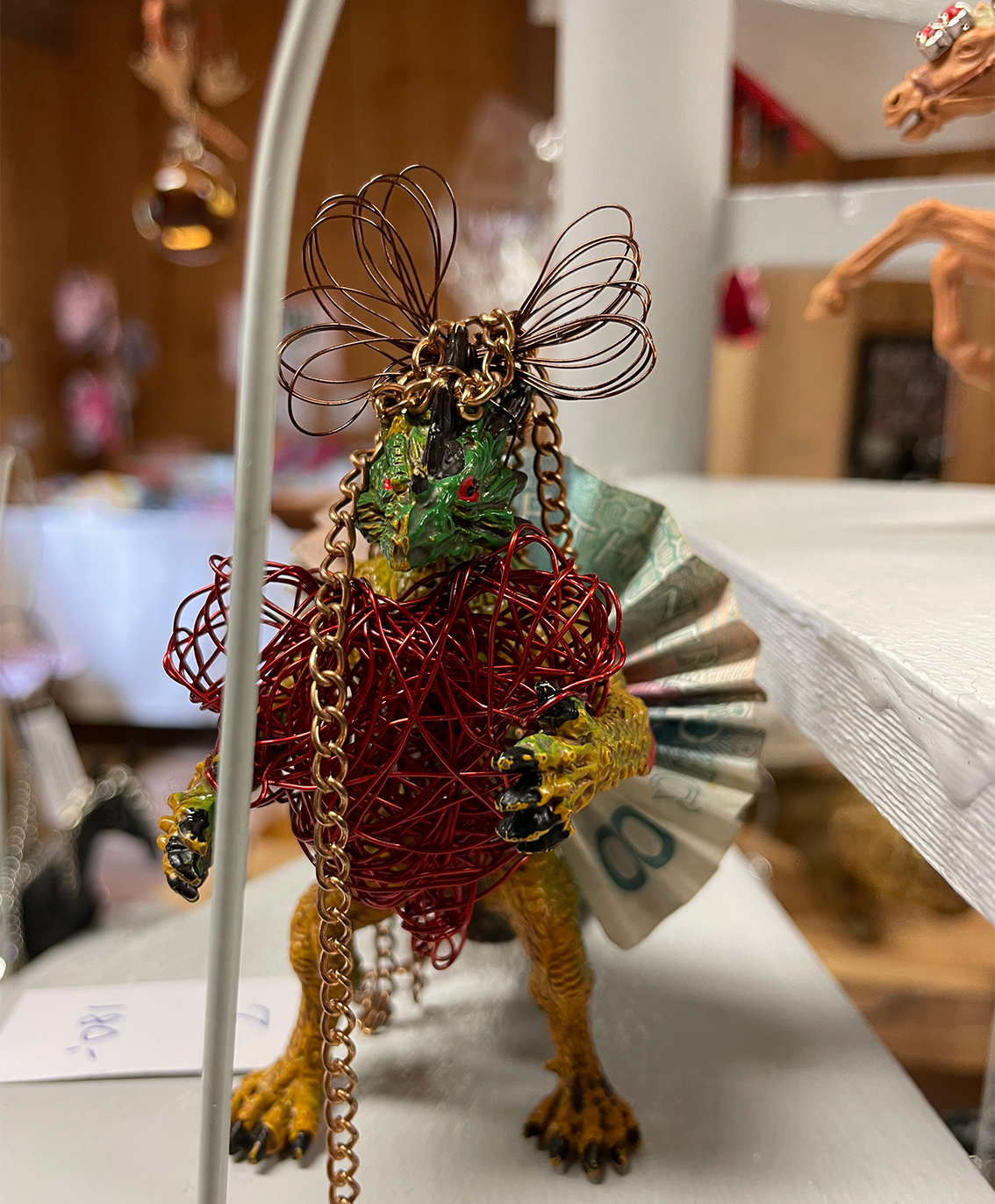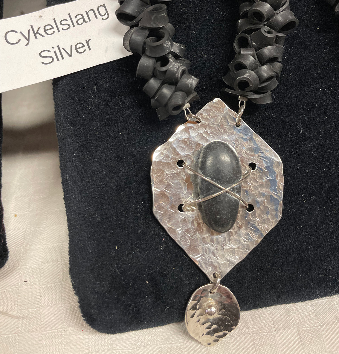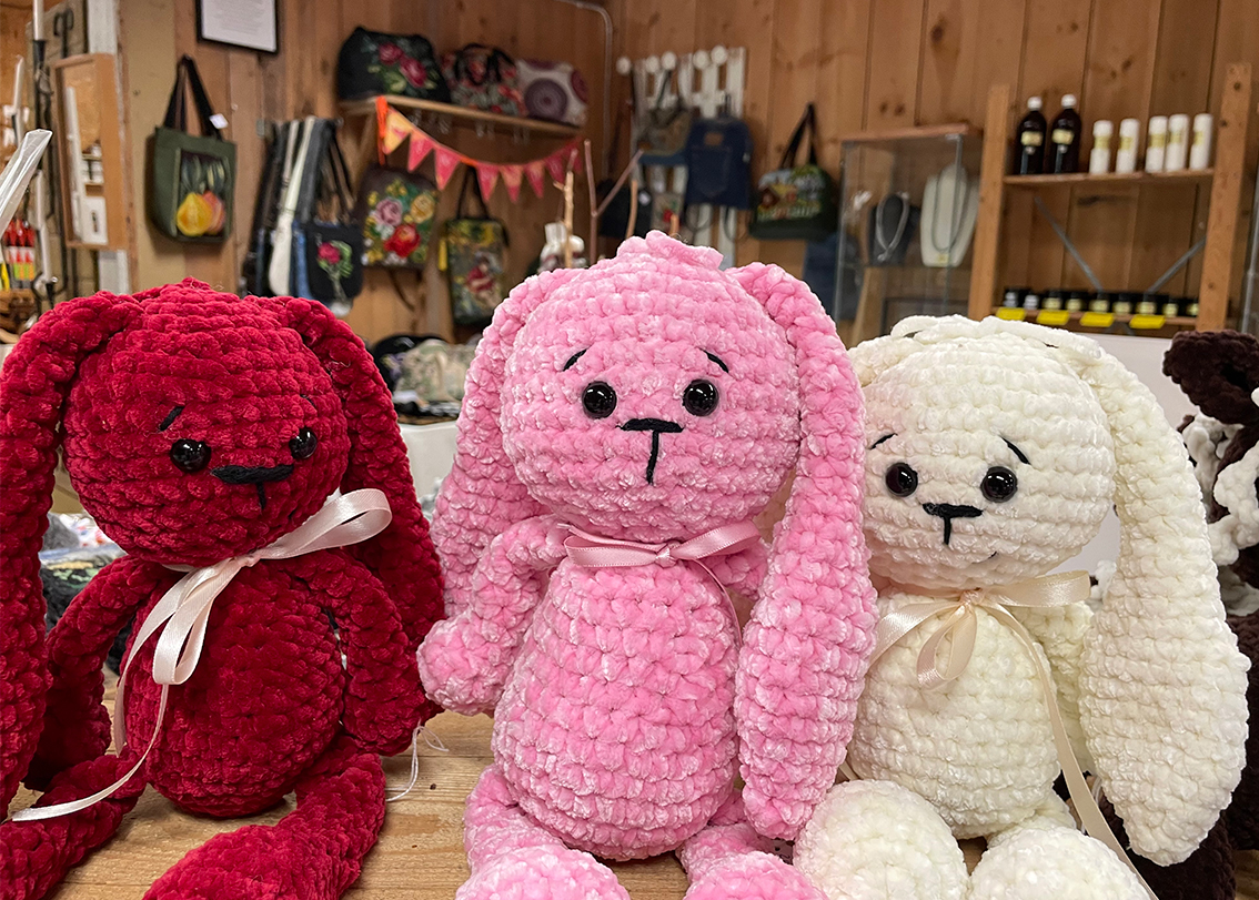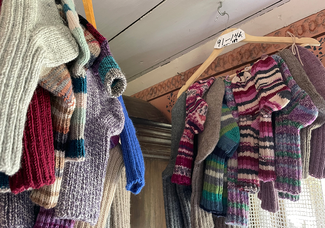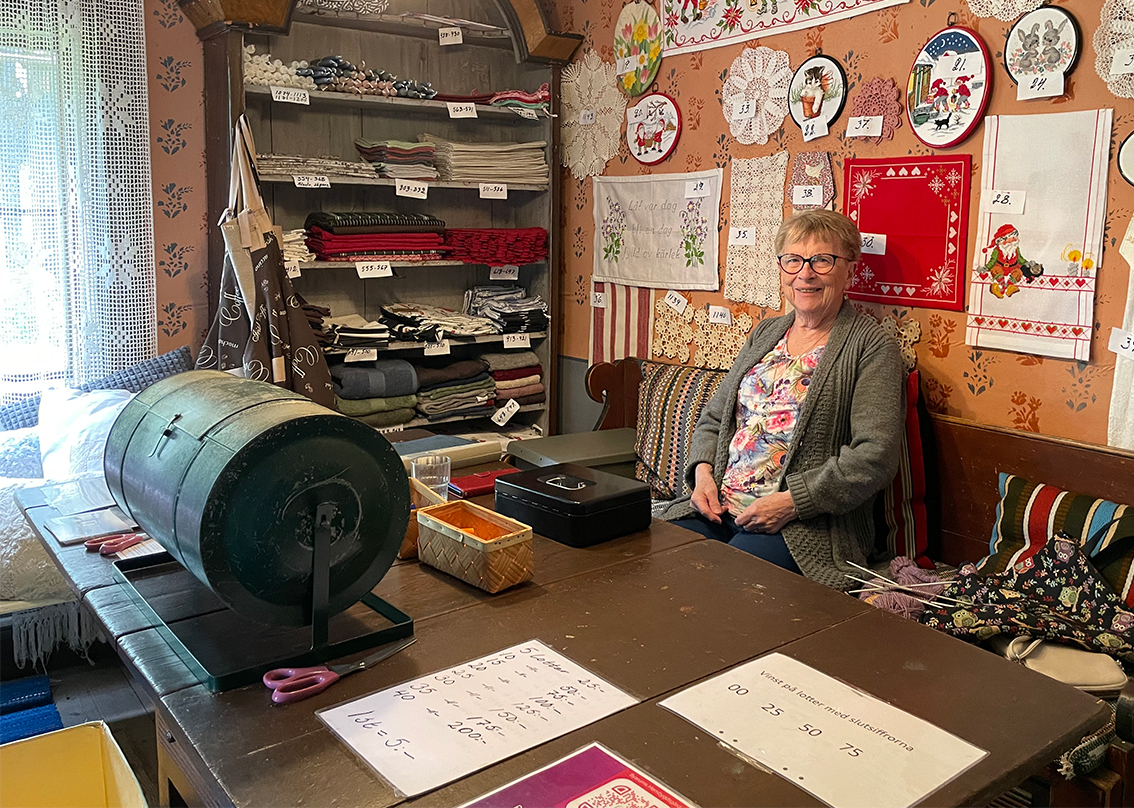 Den korta promenaden mellan lingonris och höga tallar till hantverksbutiken kan lugna de flesta. Det känns ju som att man är nästan ute i skogen. Traktens hantverkare turas om att hålla butiken öppen ända fram till mitten på augusti. Nytt för i år är återbrukshantverk, smycken och statyetter gjorda av sådant som andra inte längre behöver, som cykelslang, kapsyler glittrande stenar och gamla sedlar.