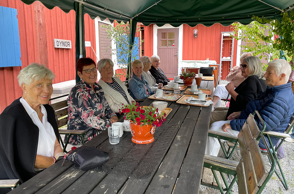 Vid långbordet ut mot baksidan har ett helt gäng kollegor från förr samlats. Flera av dem har jobbat många år på Ica i Vaggeryd, ica Håkan till och med. Nu träffas de många gånger om året och håller ihop trots att det var mer eller mindre längesen de jobbade tillsammans, en betydelsefull gemenskap där de kan prata om både gamla och nya minnen.