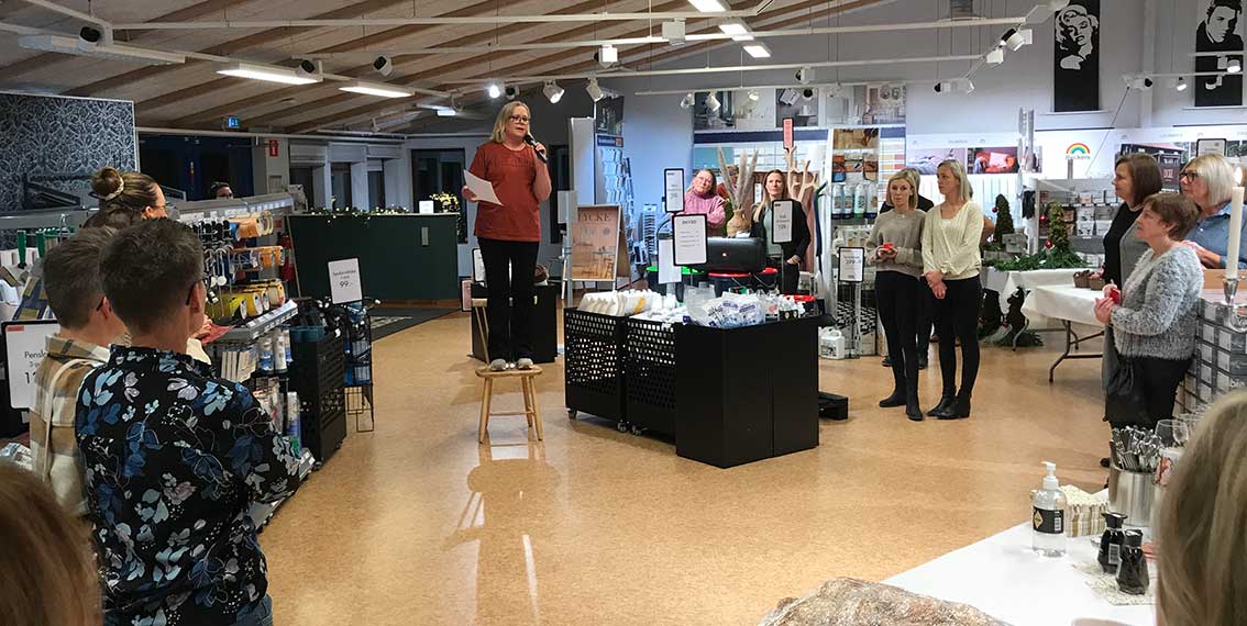Denna gången var följande företag inbjudna för att visa sina julprodukter: Midbec Tapeter, Hårateljén, Bäcks häst o trädgård och Happy Homes Sävsjö.