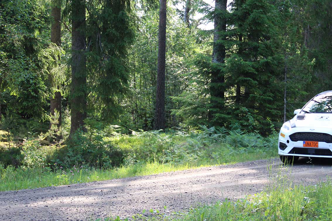 Vi följde en del av lördagens första specialsträcka, från Jutabygget upp till Ekesås, öster om Skillingaryd.