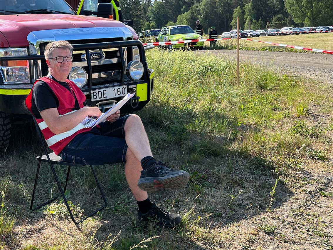 Stig-Roland Johansson, 78 känner många nog mest som ledare och tidigare aktiv i Skillingaryds Frisksportklubb och han satt på sitt pass. Denna gången var det för att följa grannen David Lindströms framfart på vägarna.