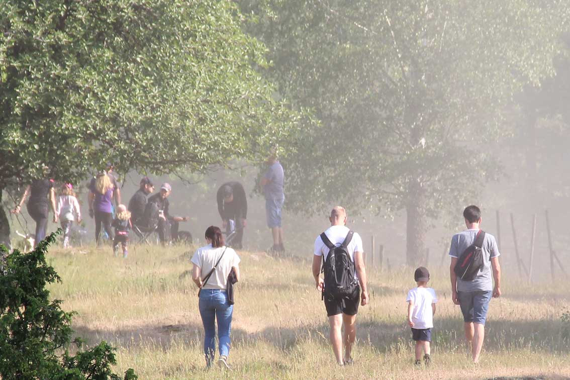 Ensam i en hage stod en filmare och på höjden mängder med rallyintresserade. Det vara hundratals för att inte säga tusentals på vägen upp mot målplatsen i Ekesås.