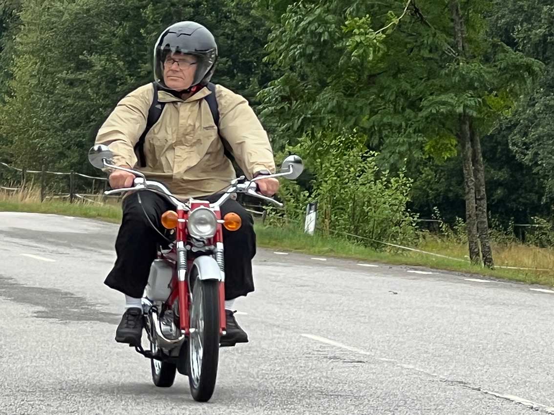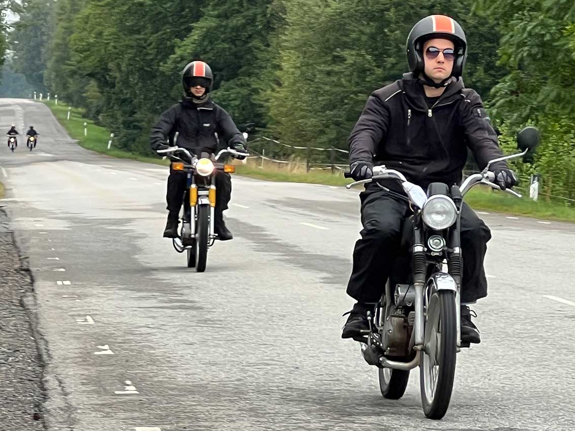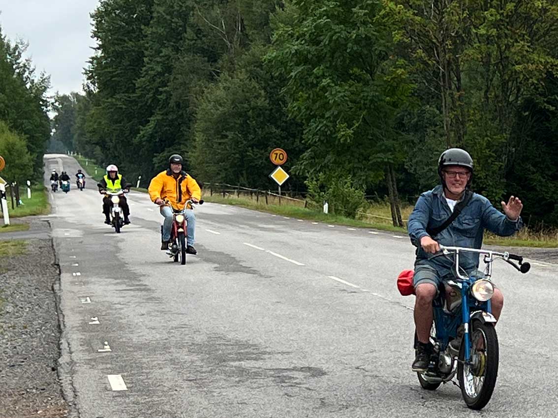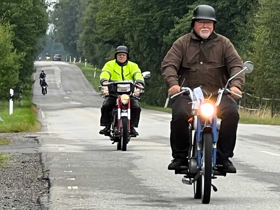 Det var start intill klubblokalen vid Hantverkaregatan där alla entusiaster av mopeder och fler andra tvåhjuliga fordon fanns på plats för några timmar på småvägar sydväst om Skillingaryd. Mats Carlsson, Janne Stark, Vincent Persson med flera funktionärer såg till att det blev en trevlig aktivitet.