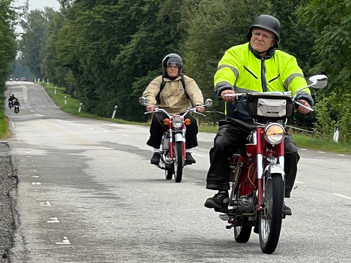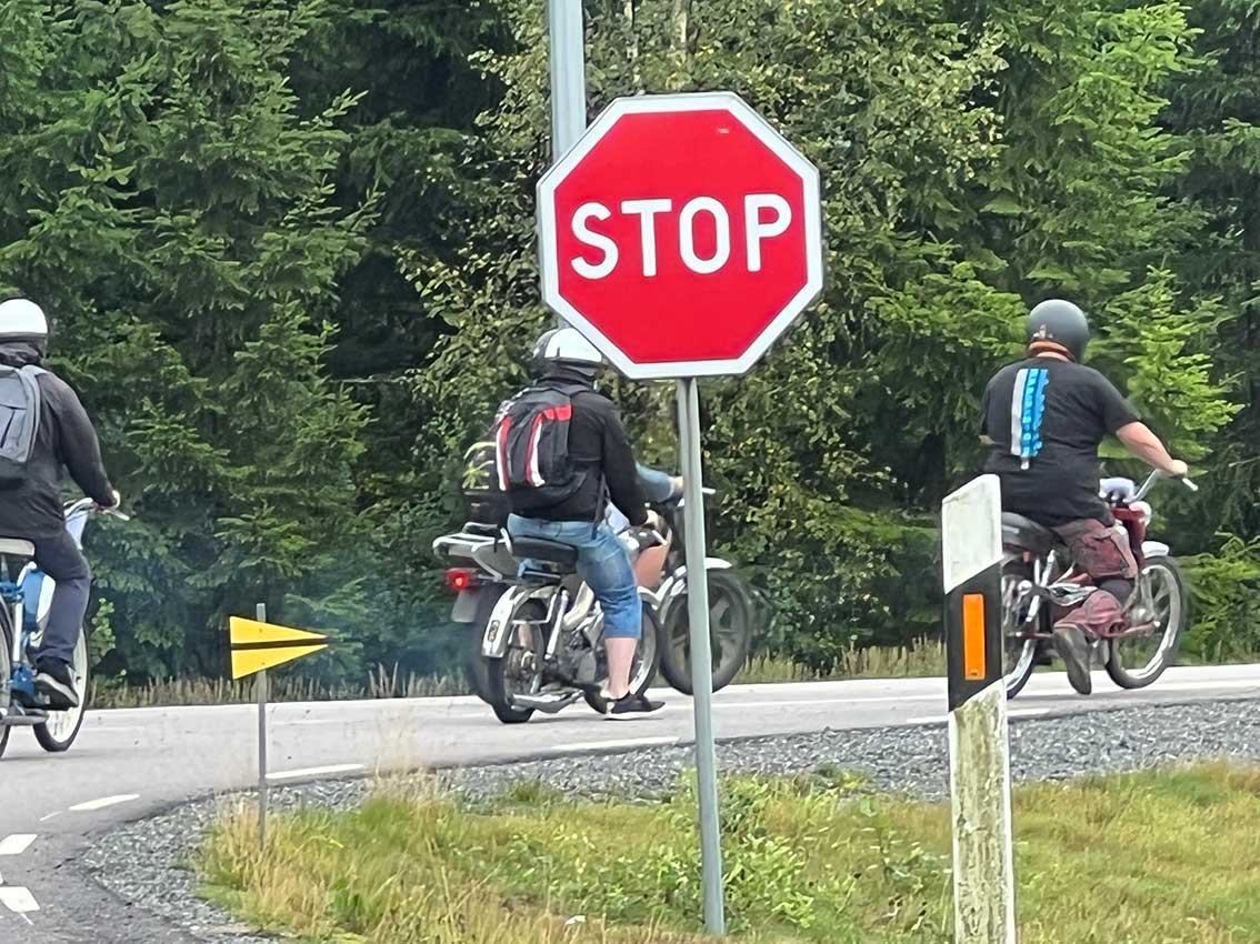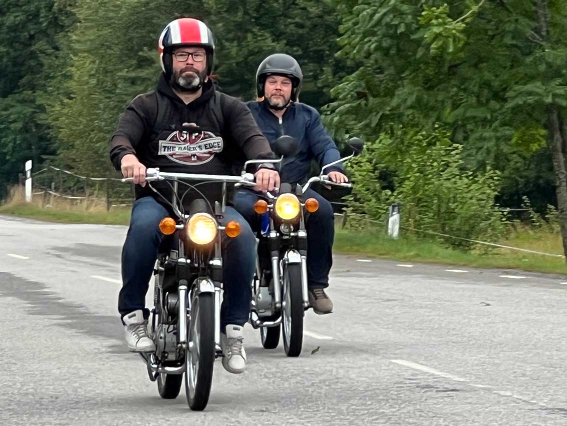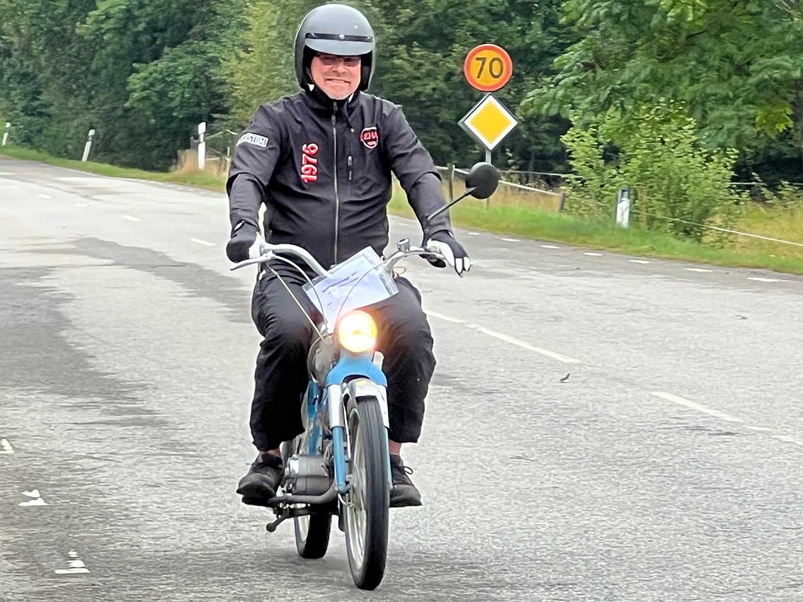 Det var start intill klubblokalen vid Hantverkaregatan där alla entusiaster av mopeder och fler andra tvåhjuliga fordon fanns på plats för några timmar på småvägar sydväst om Skillingaryd. Mats Carlsson, Janne Stark, Vincent Persson med flera funktionärer såg till att det blev en trevlig aktivitet.