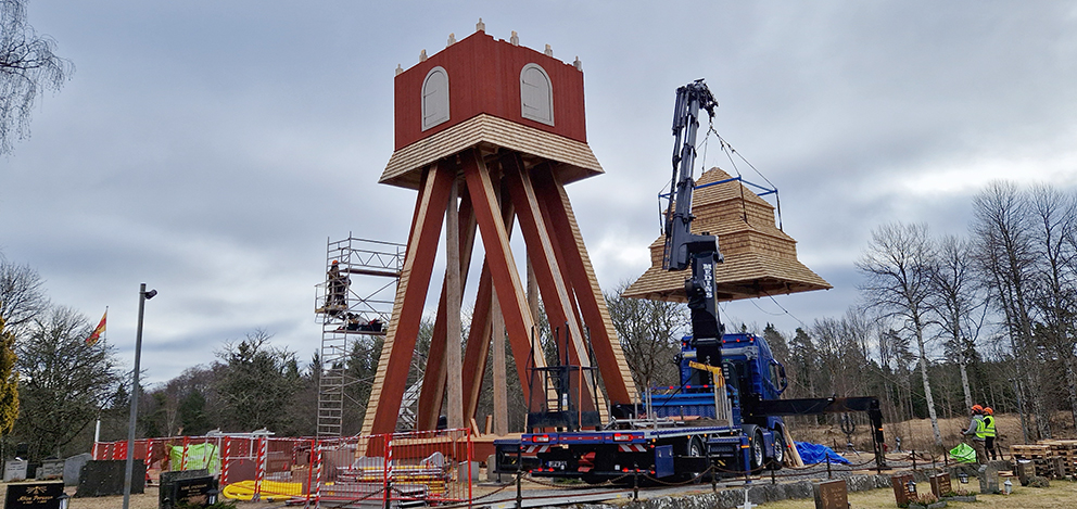 Det var fullsmockat med människor i Hagshult under söndagen då den återuppbyggda klockstapeln officiellt invigdes. – I dag är en dag av glädje och tacksamhet, sa kyrkorådets ordförande Ulf Svenzon.