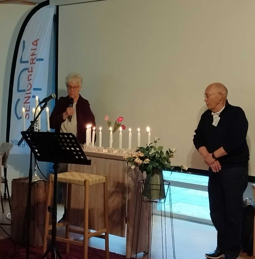 Britt-Marie Oldin läste en dikt av Bob Setterlind medan Anders Mattsson tände ljus för dem vi saknade och Jill Berg sjöng stämningsfullt.