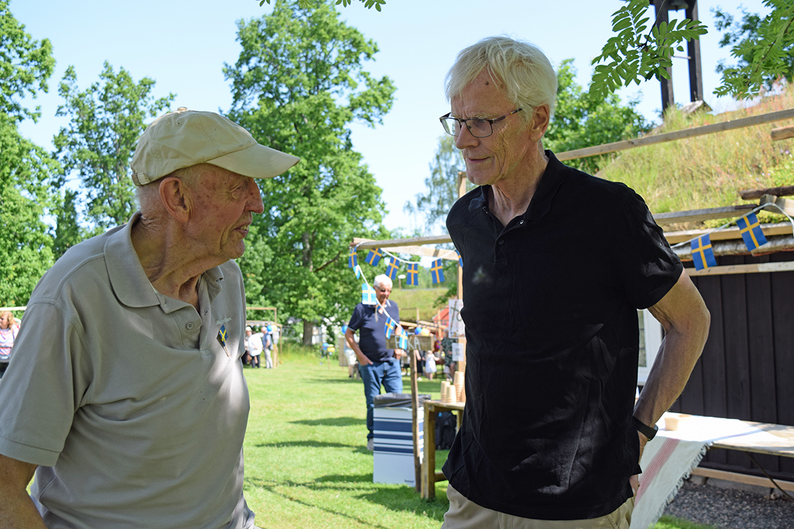 Tidigare midsommarfestgeneral Rune Storck träffar yngre generationen bakom firandet i hembygdsparken