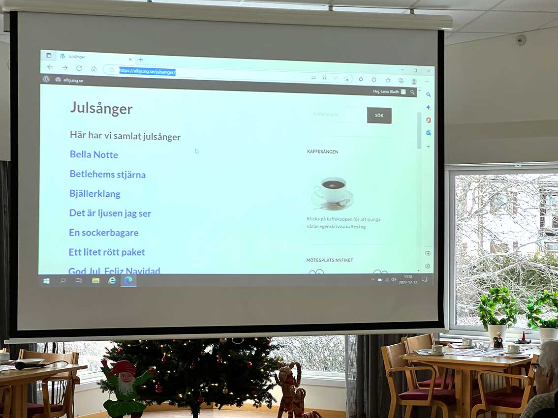 Nyheter Bildextra: Tårta och sånger på Sörgården Uppdaterad 16 december, 2022 08:52 · Publicerad 16 december, 2022 08:50 Lyssna På äldreboendet Sörgården i Skillingaryd har det varit tårtkalas och många julsånger.Monica Pettersson och Gunilla Stork Vikström ledde som så många gånger tidigare allsången och det var en rad välkända melodier.Många av de boende hade mött upp för att lyssna och även sjunga.Sedan många år tillbaka bjuder Lions Club på tårta och den lät sig väl smakas tillsammans med kaffet.8 bilderTryck på en bild för fullskärmÖppna bildspel1/82/83/84/85/86/87/88/8Monica Pettersson och Gunilla Stork Vikström presenterade tårtan från Lions Skribent Artikeln är skriven av Per Bunnstad per@skillingaryd.nu Skriv en kommentar Avbryt svarKommentar * Genom att skicka kommentaren godkänner du vår GDPR-policy för kommentarer.Namn * E-postadress * Webbplats Spara mitt namn, min e-postadress och webbplats i denna webbläsare till nästa gång jag skriver en kommentar.