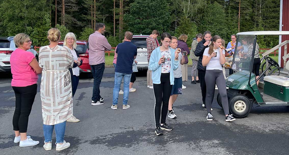 I pausen bjöds på grillad korv med bröd, precis som besökarna får under föreställningarna.